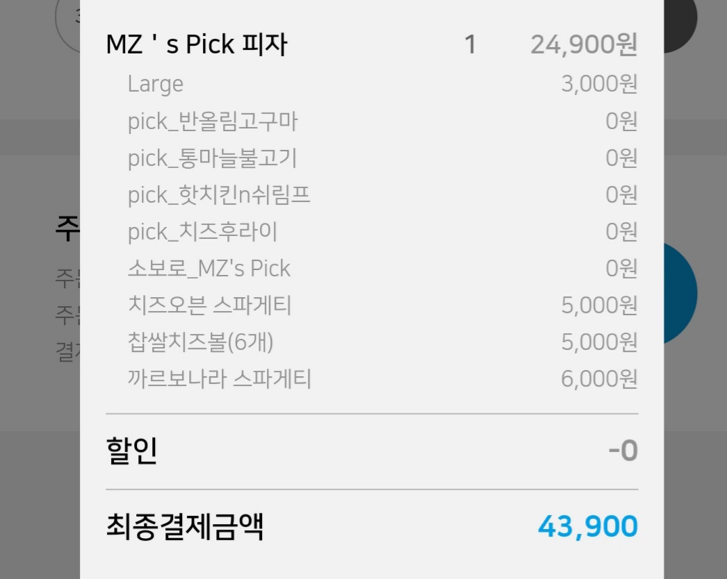 치즈오븐스파게티와 까르보나라 스파게티, 찹쌀치즈볼까지 추가로 시키니 금액이 훅훅 오른다.