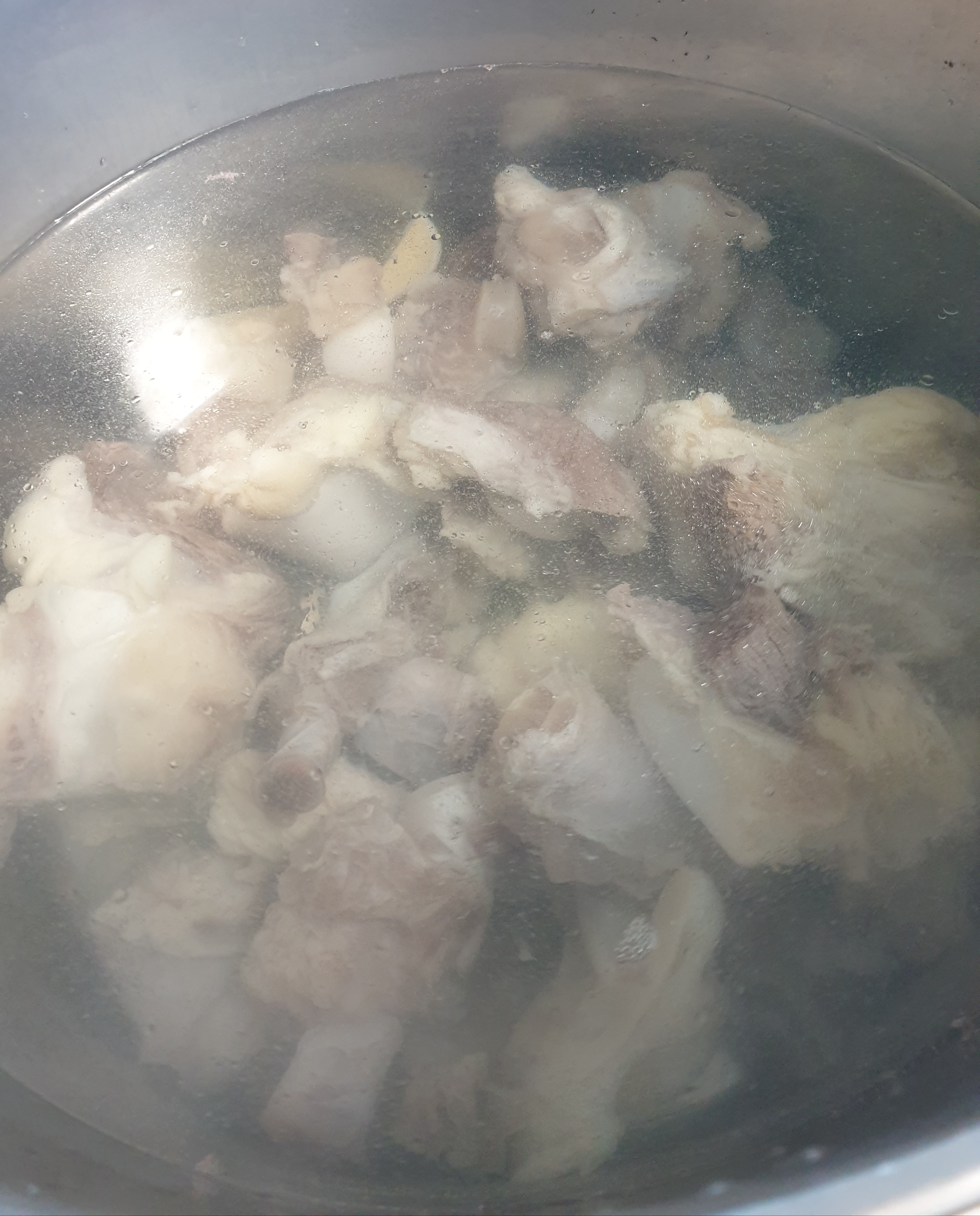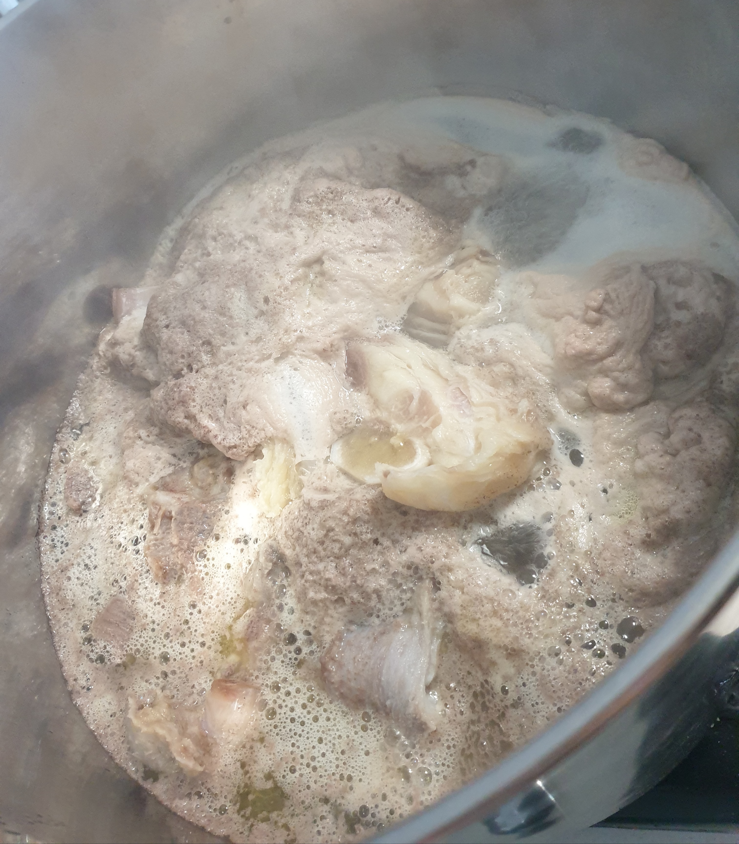 어떤 분들은 애벌 삶기 할 때 도가니에 기름이 너무 많아서