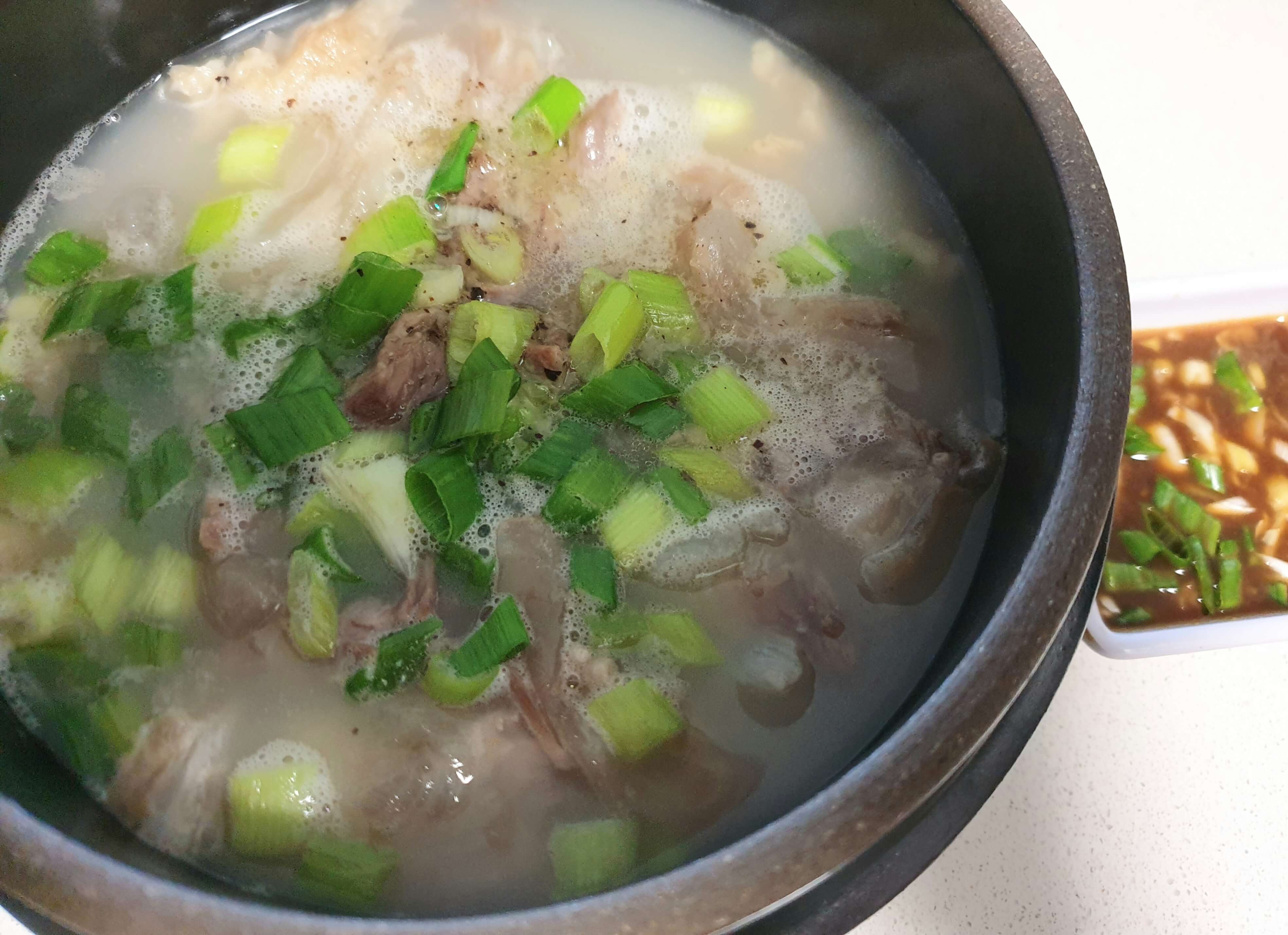 주인집 아주머니가 도가니탕을 뽀얗게 끓여서 먹으라고 나눠 주셨는데