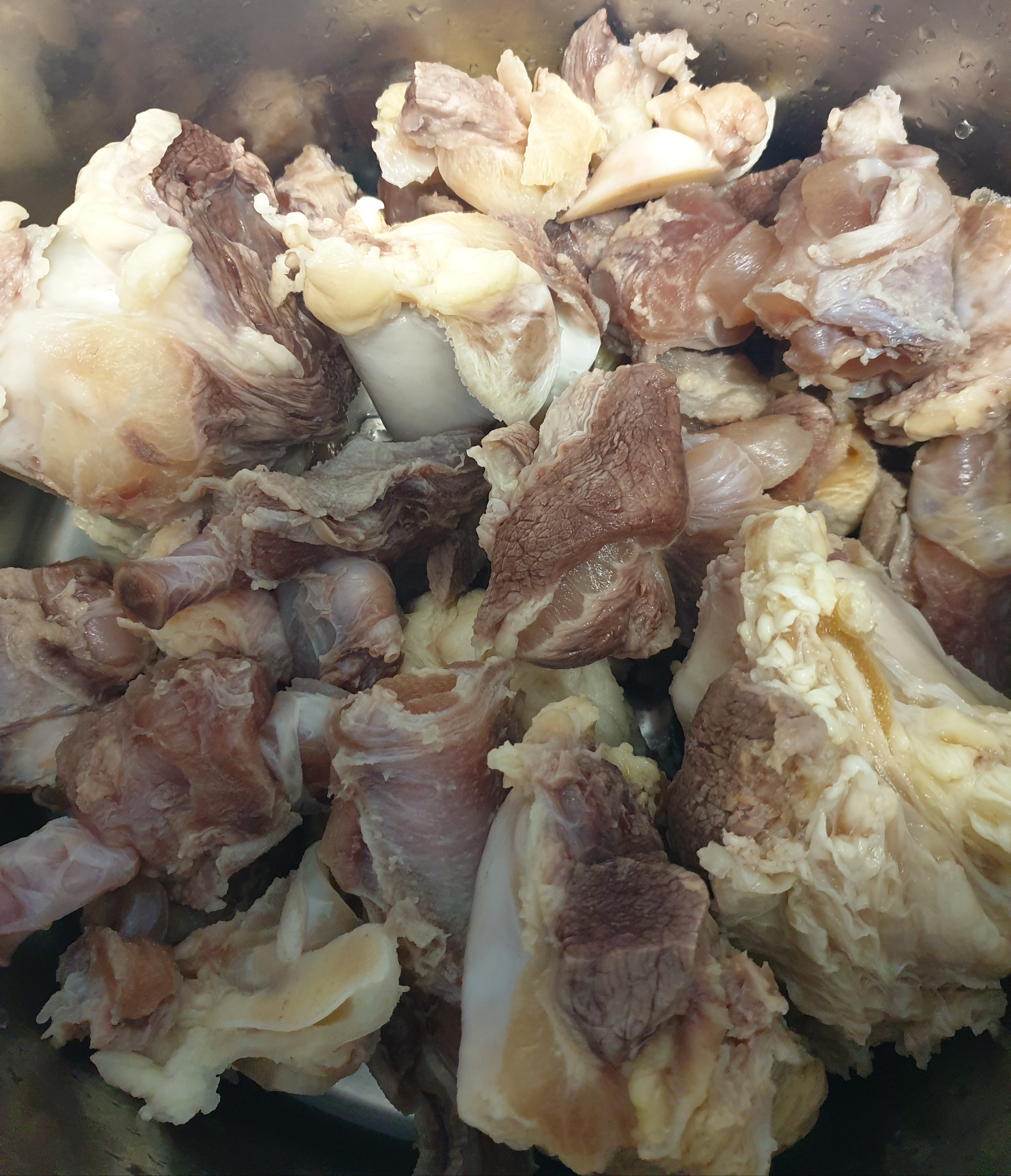 도가니 2kg, 스지 1kg을 큰 냄비에 넣고