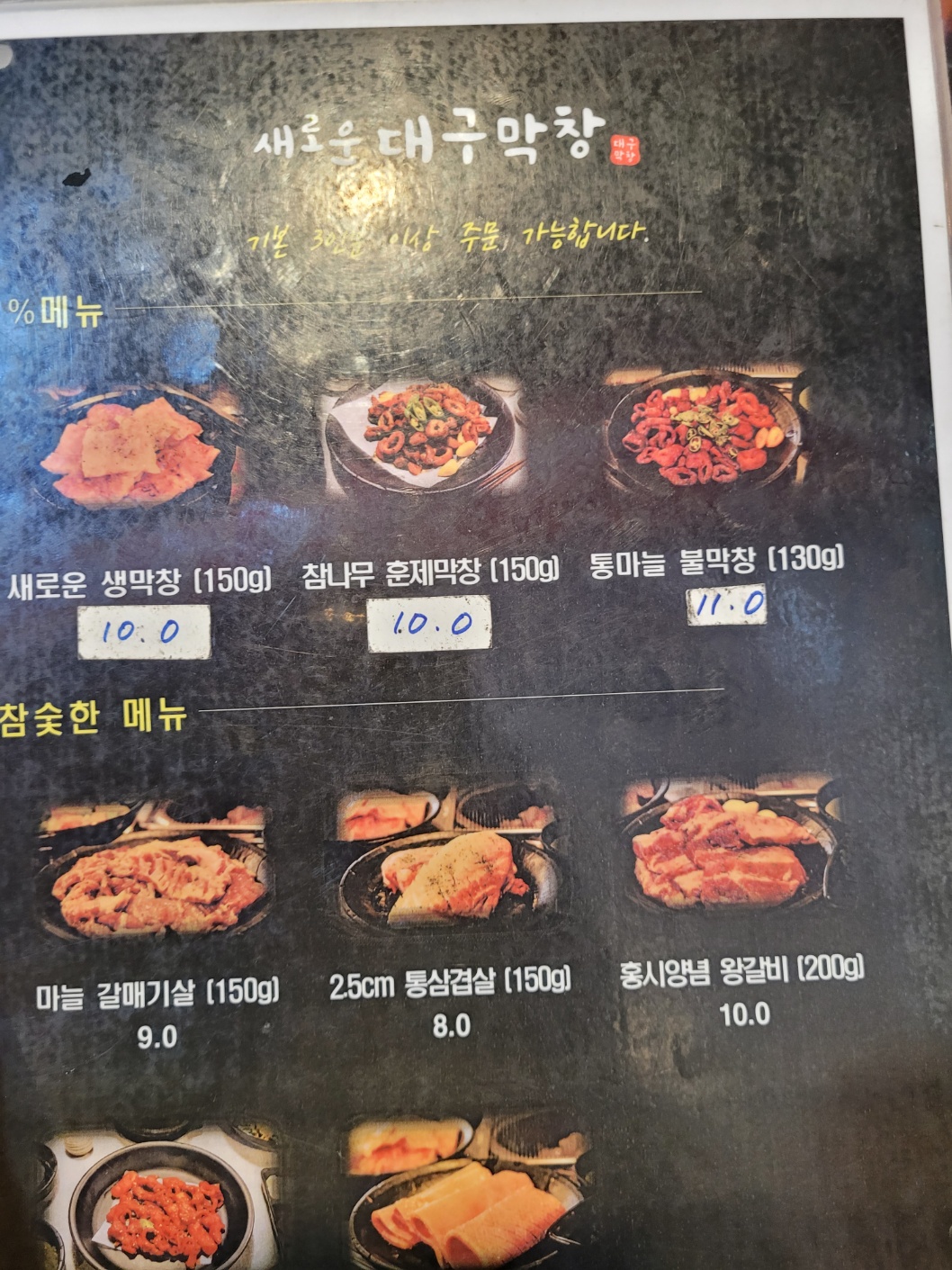 여러가지 메뉴 중에 우리는 일단 새로운 생막창을 시켰다.