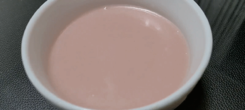 분홍색이 너무 가라 앉아있어서 살살 섞어준 다음에 조심히 여러번 나눠서 뚜껑을 열었는데, 그래도 살짝 넘쳤다.