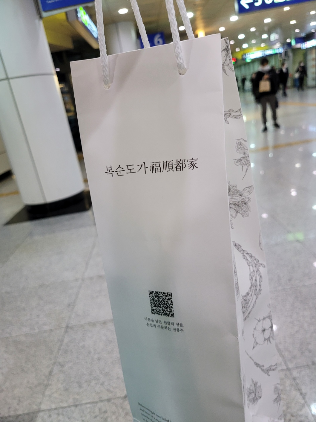 오빠가 등산을 다녀오며, 부모님이랑 먹어보라고 와인을 사다 줬다. 아마 부모님 결혼기념일 겸 사 온 것 같다. 종이가방에서 꺼내보니 깔끔하면서 포인트가 예쁜 박스가 나온다. 박스를 열어보
