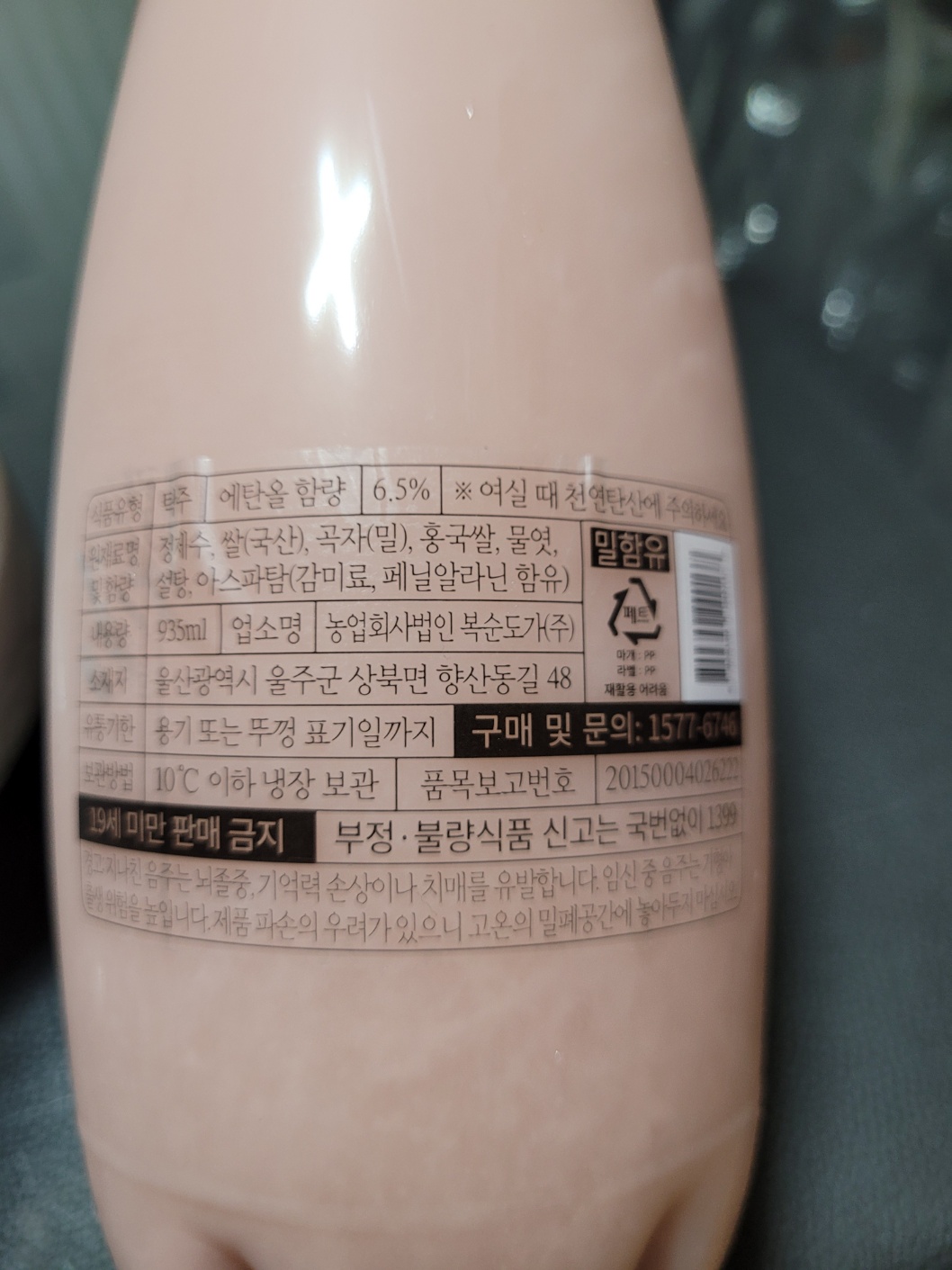 예쁜 분홍색 막걸리, 선물용으로도 괜찮을거 같고 한번쯤은 마셔봐도 좋을거 같다.