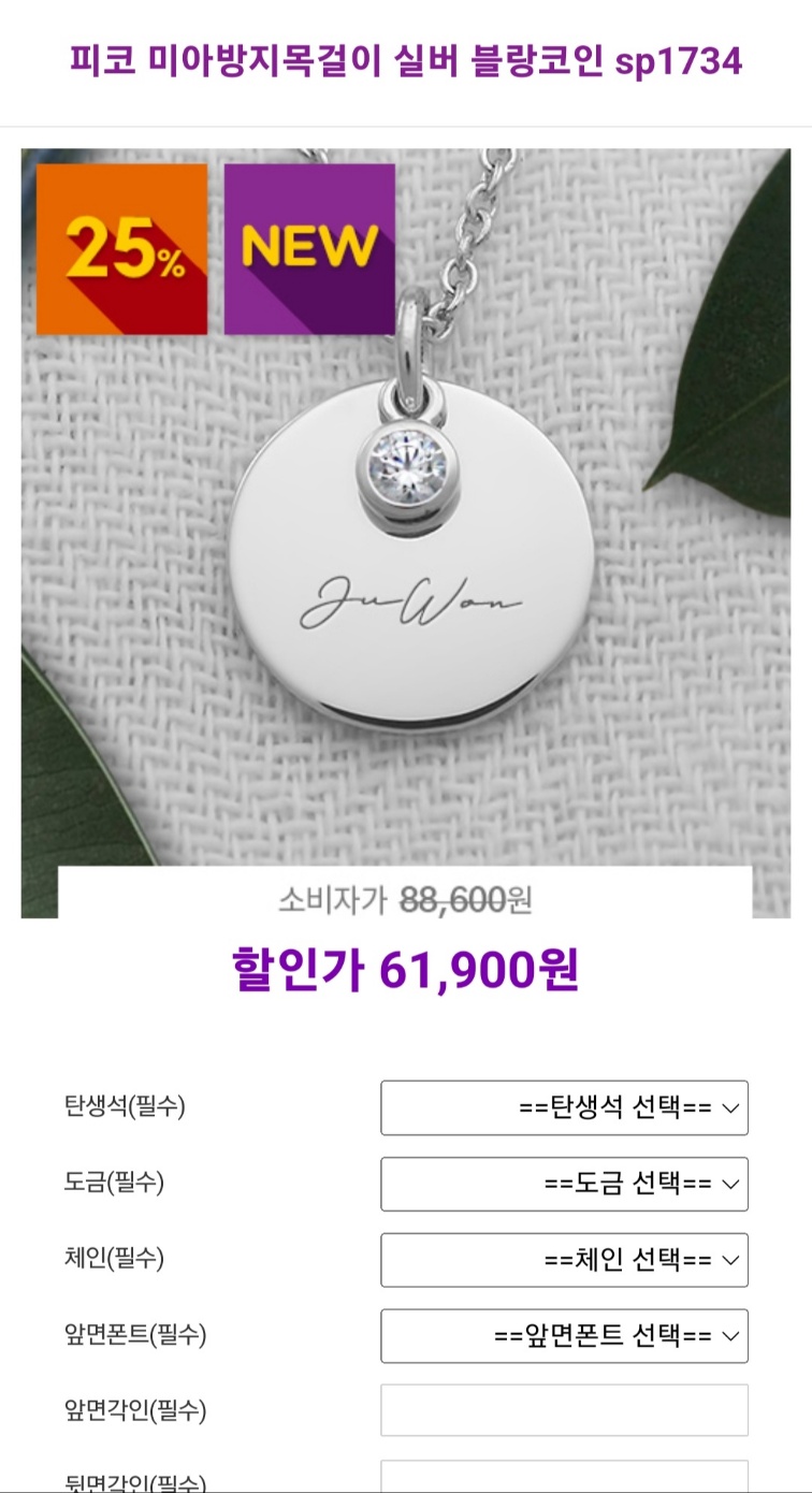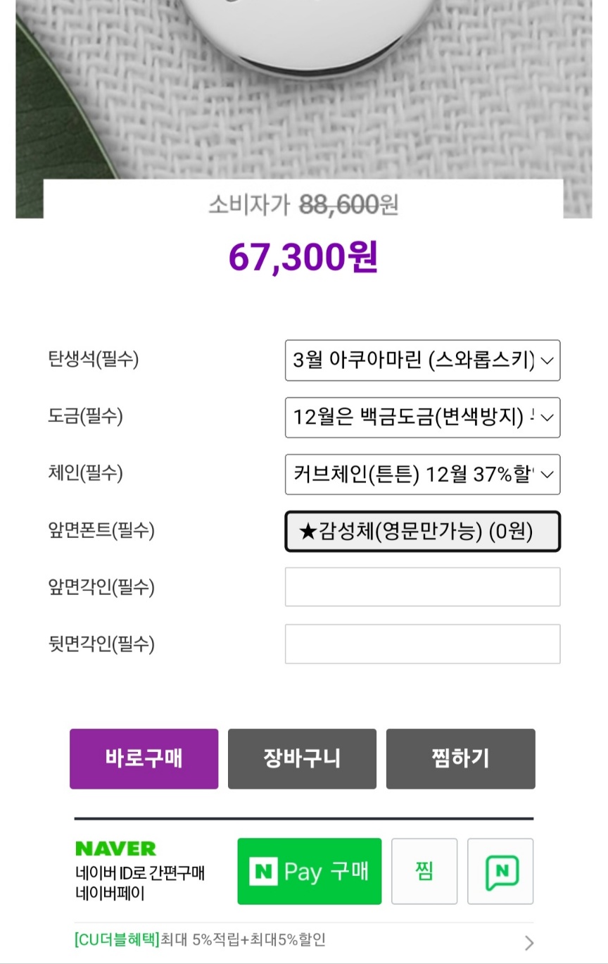 탄생석도 고르고, 각인도 실수없이 잘 적어서 주문완료.
