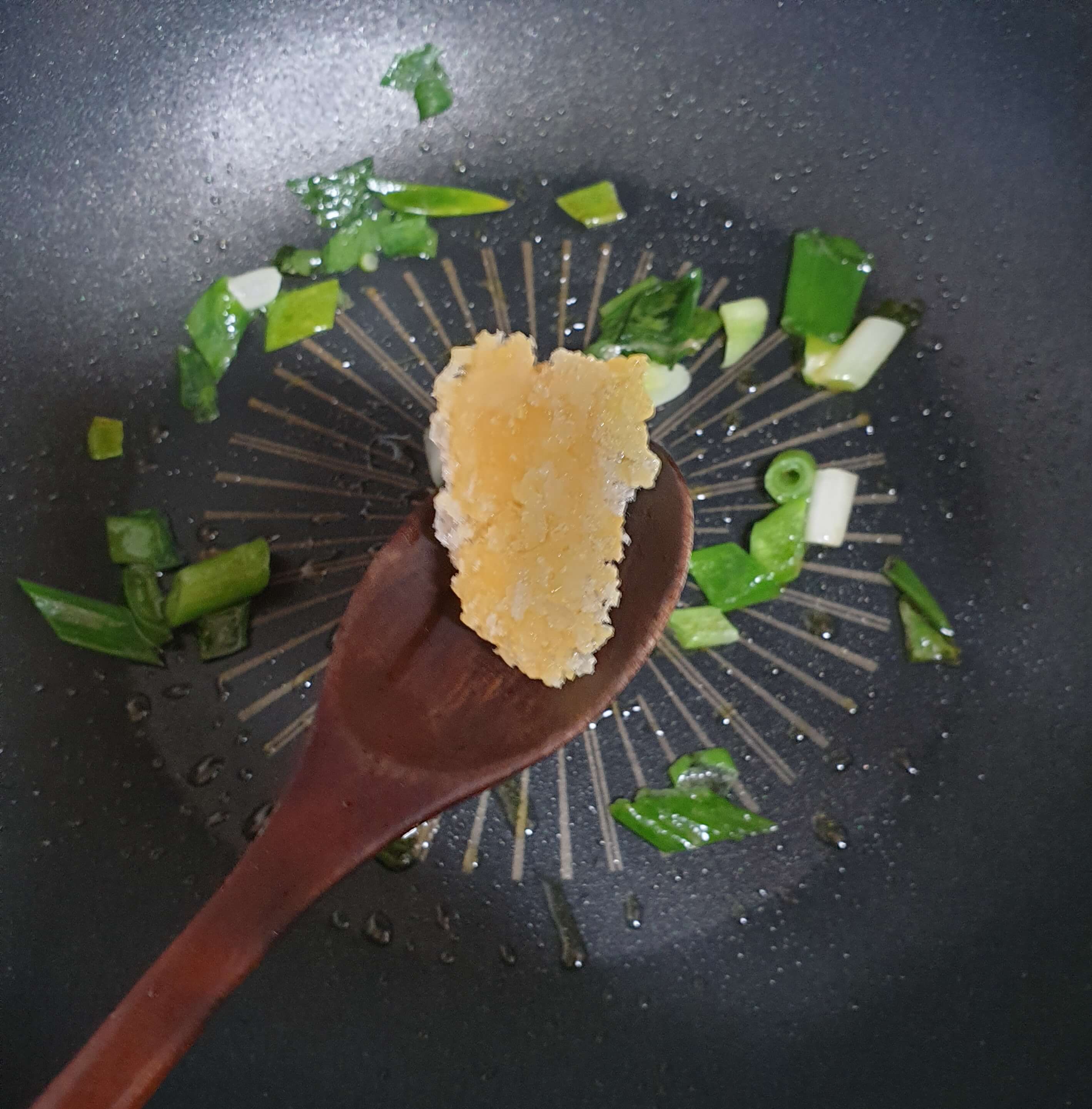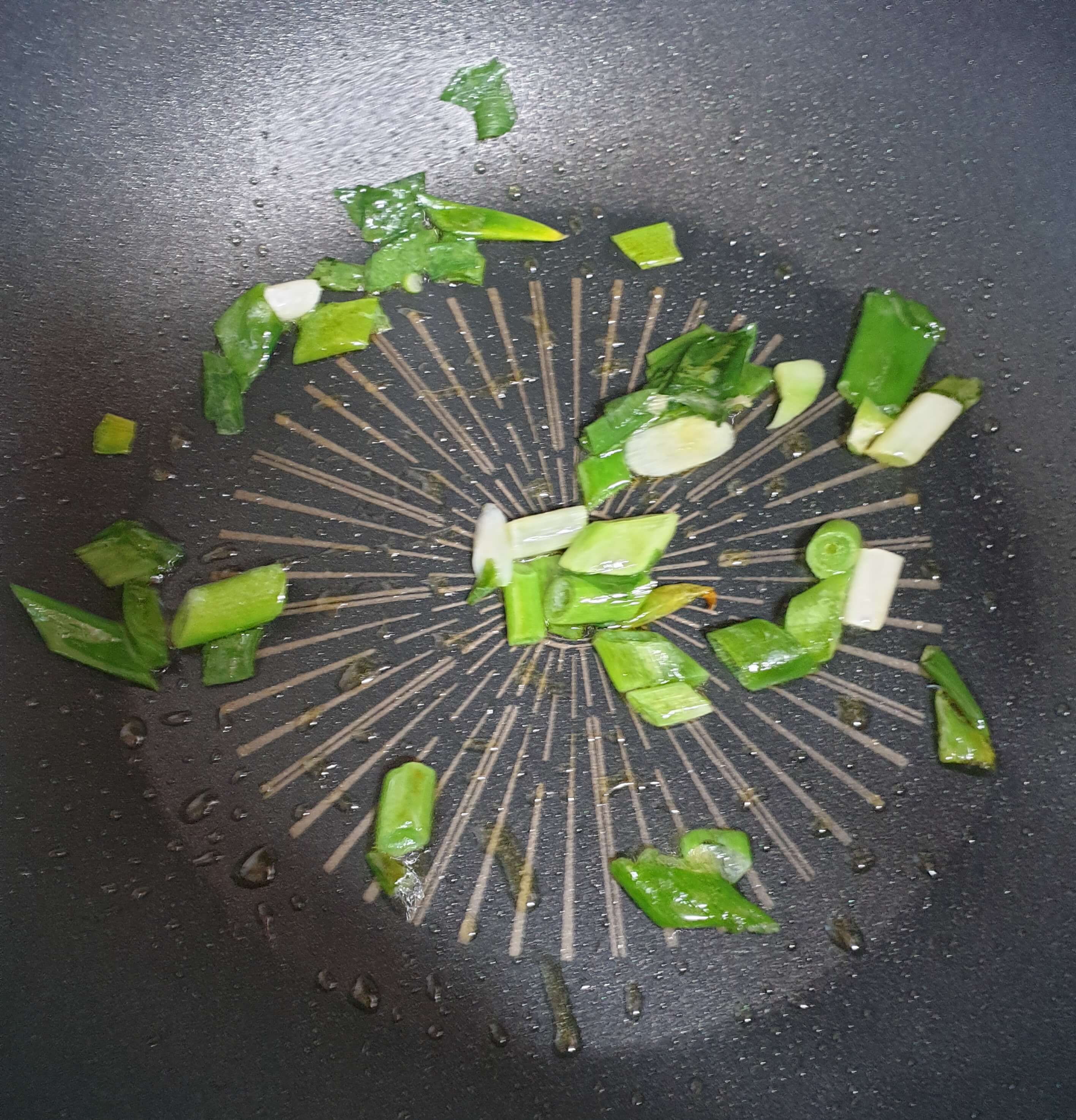 중 약불에서 파 기름을 내줍니다.
