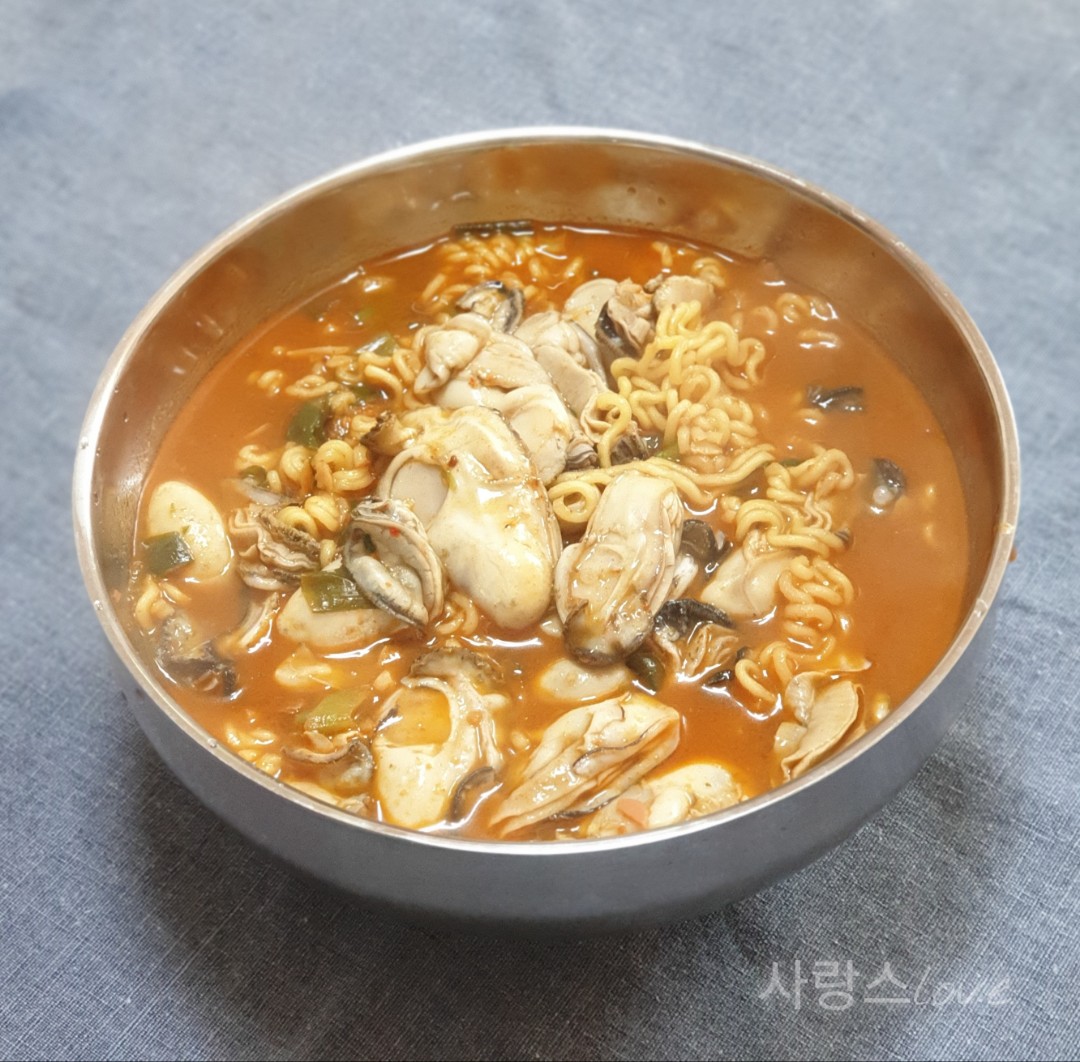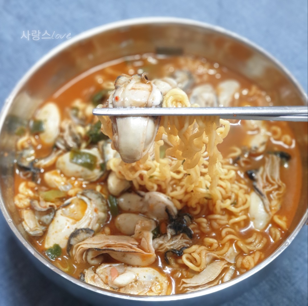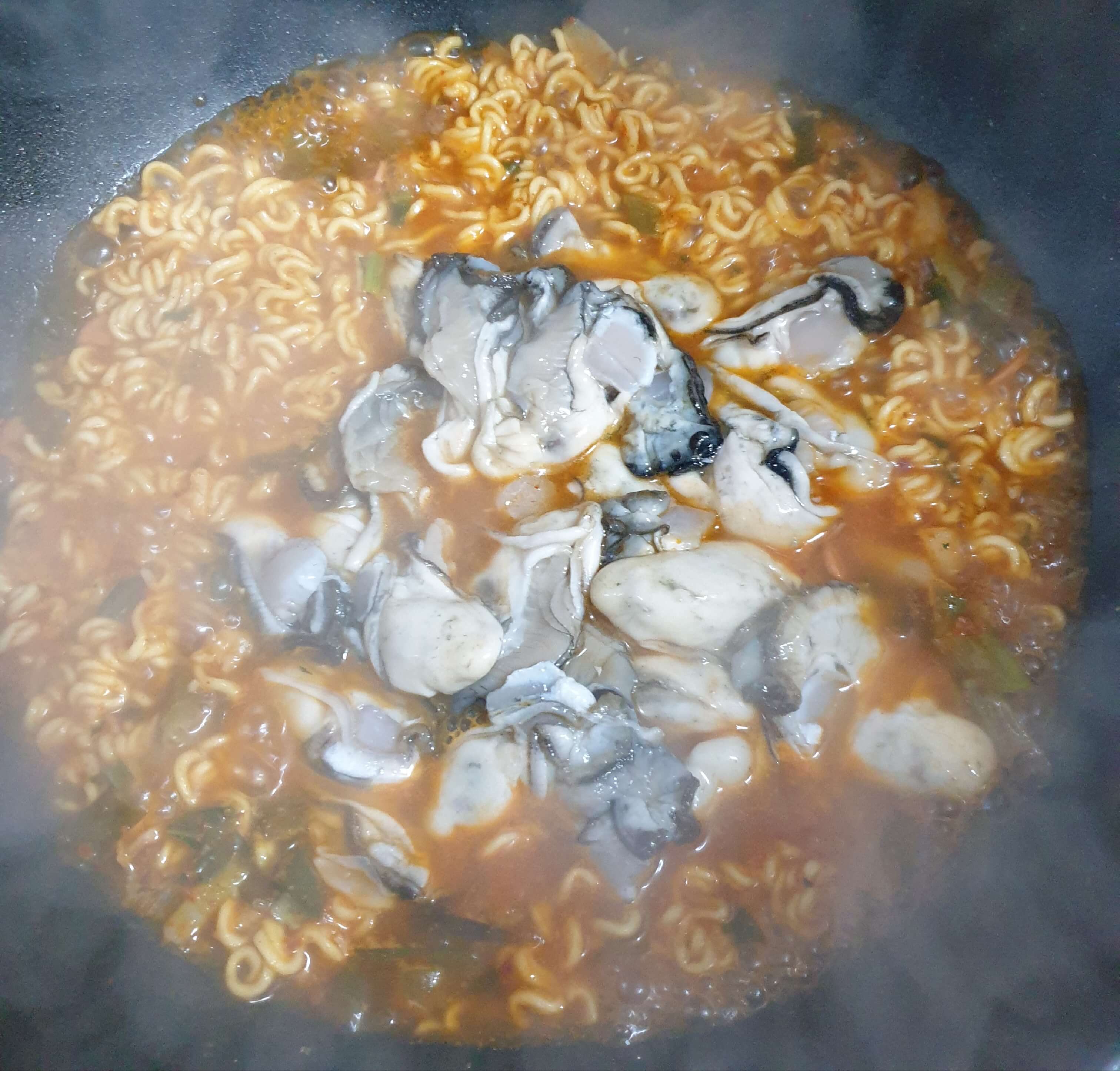 굴이 듬뿍 들어가 국물맛까지 일품인 굴 라면.