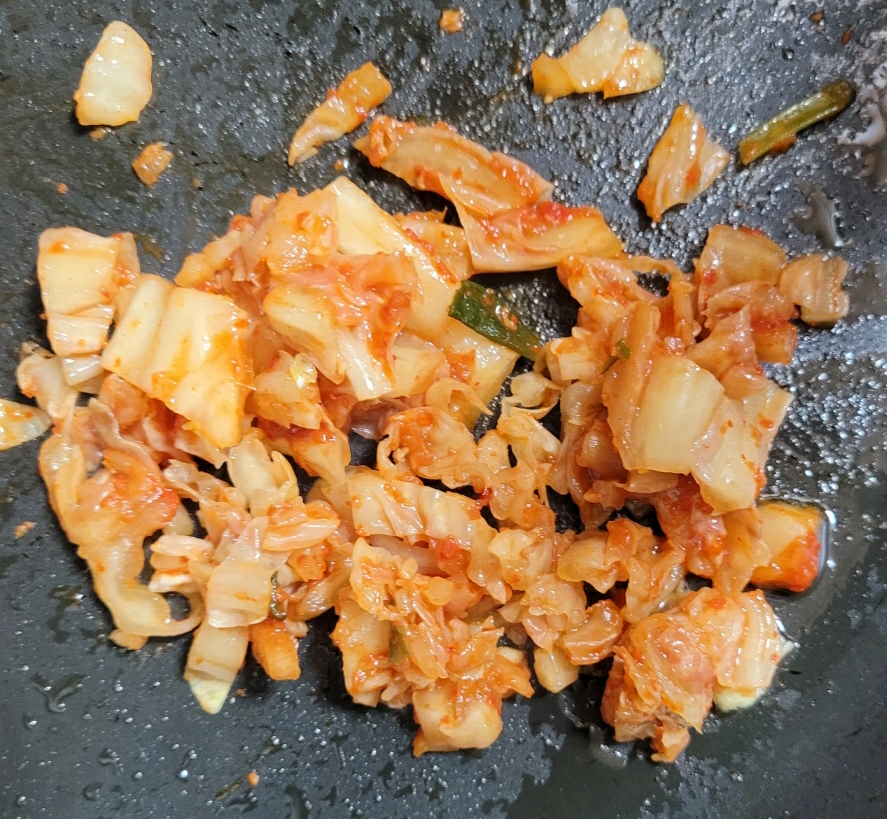 김치를 약간만 썰어 볶아주세요.