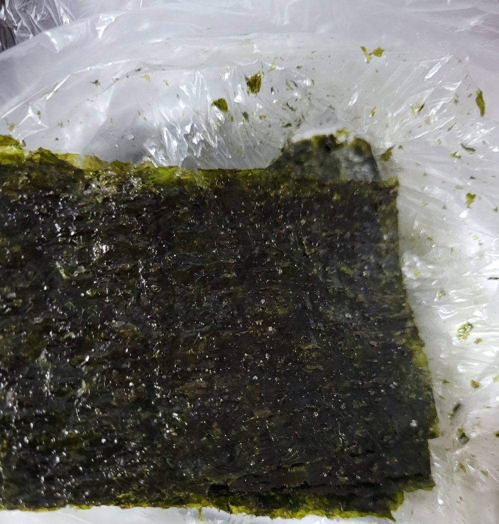 봉지에 김을 넣고 김가루를 만들어 줍니다.