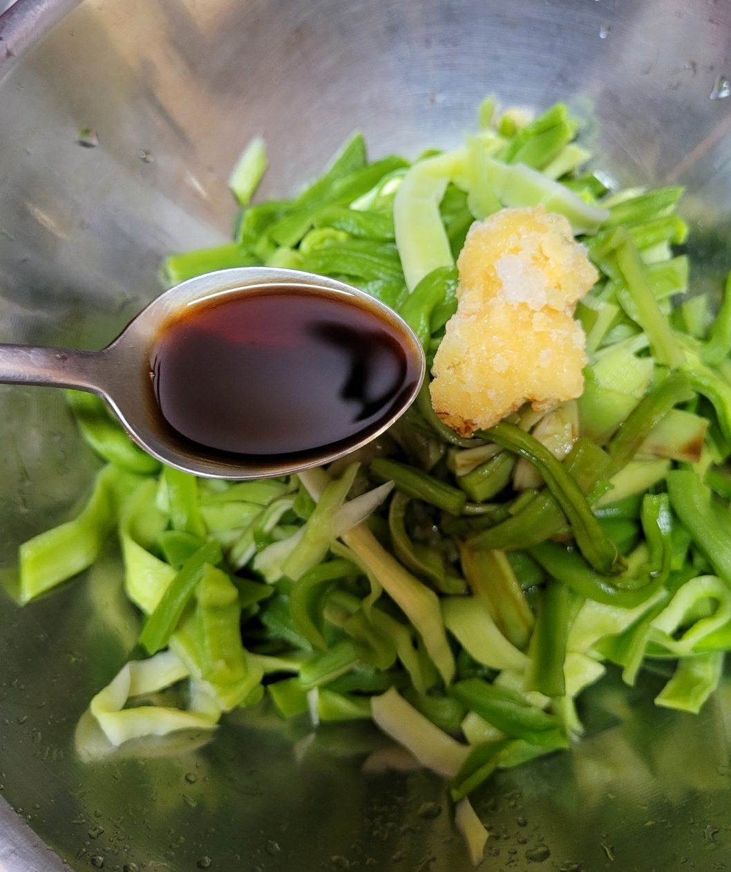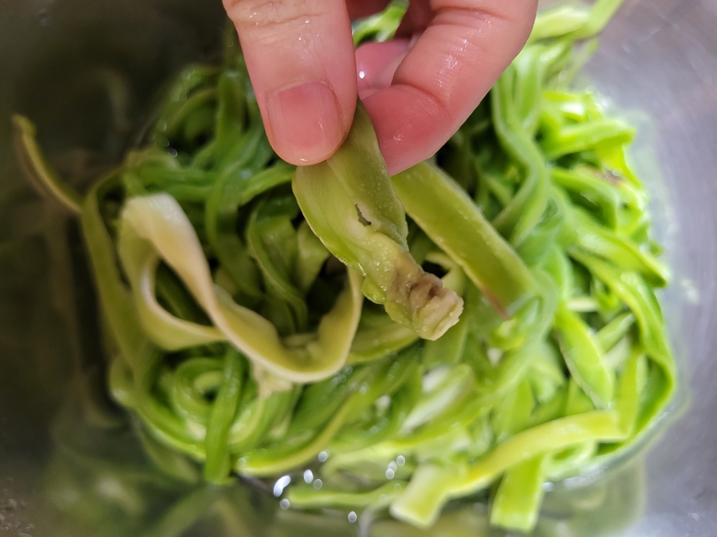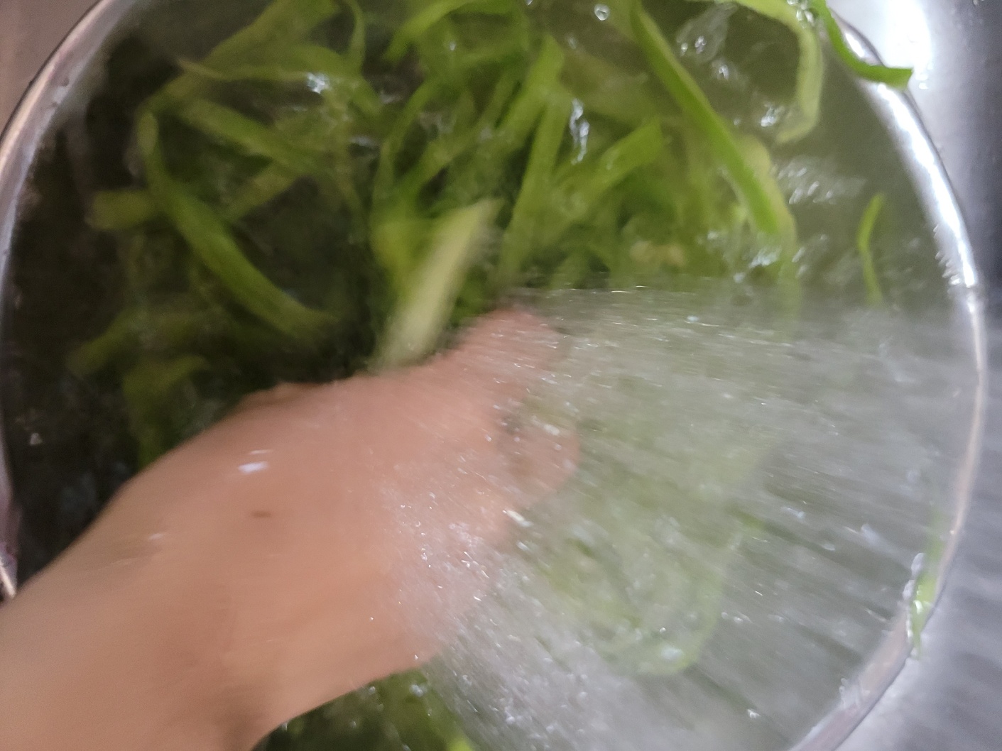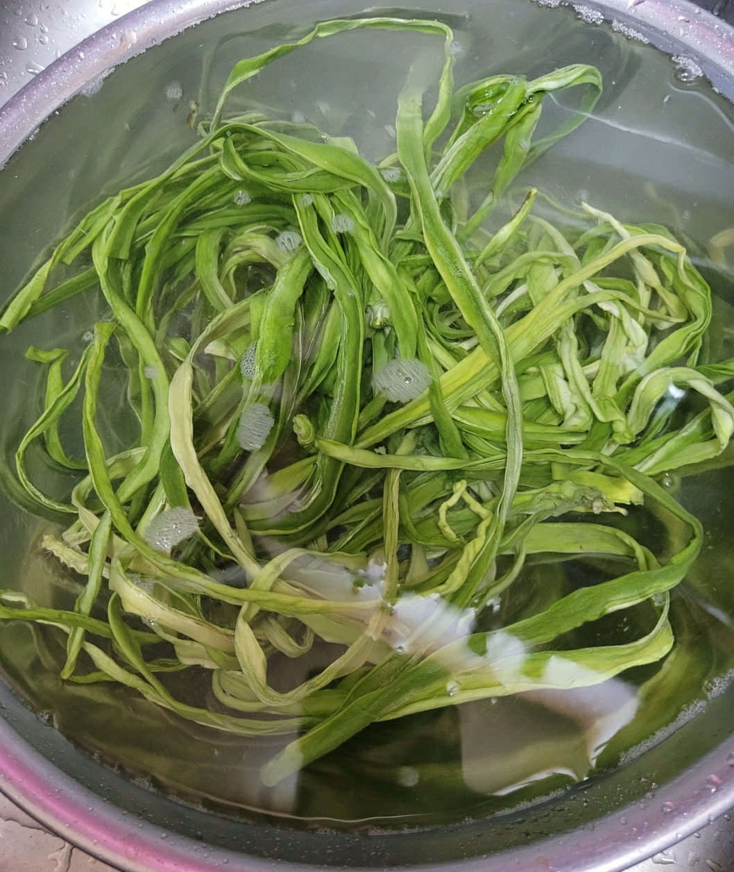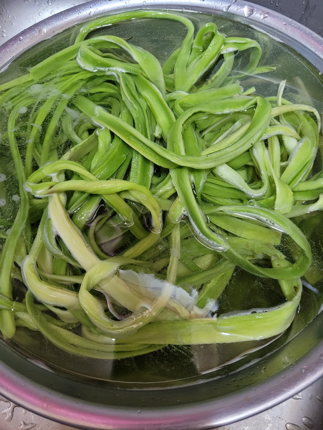 잘 불어난 궁채는 깨끗한 물이 나올 때까지