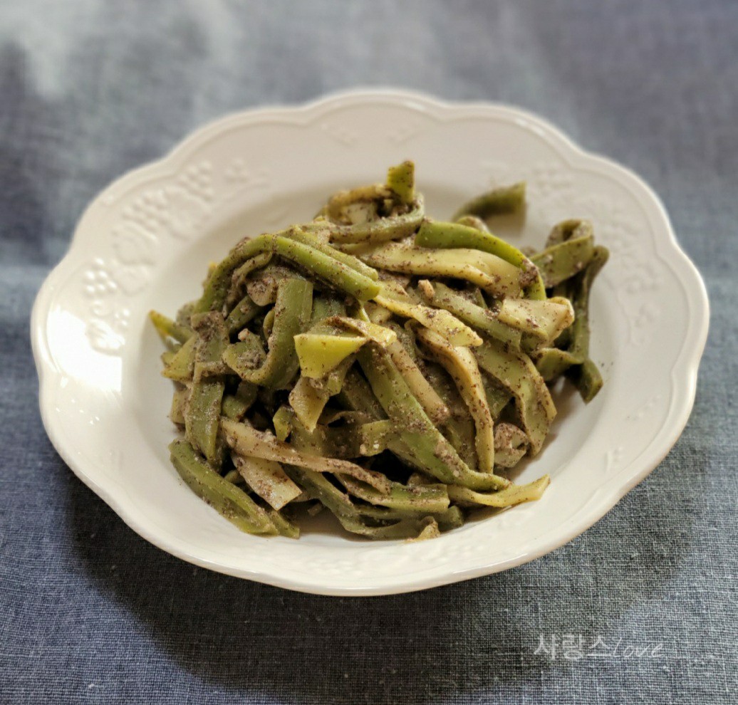 들깨가루를 취향껏 넣고 더 볶아주세요.