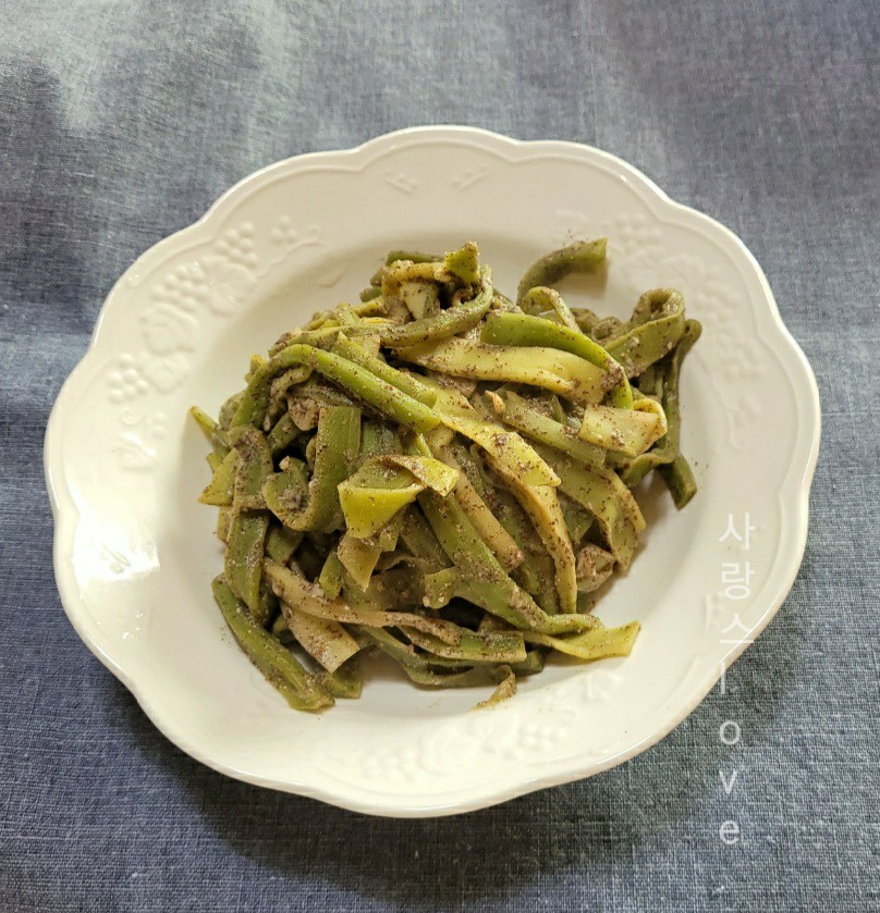 초록색 파스타로 뭘 만드신 건가 생각했는데