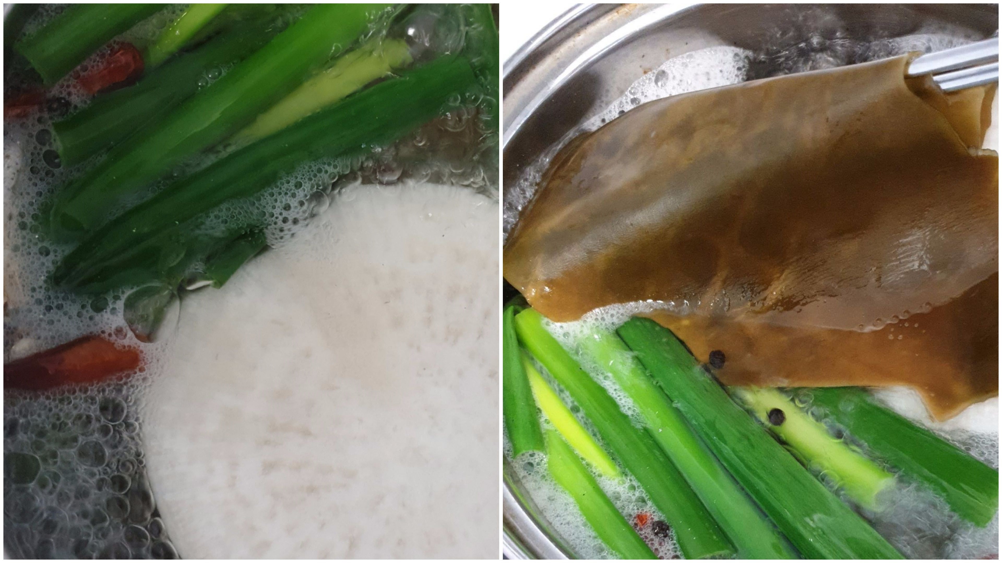 무는 조금 두껍게 썰어 넣고 다시마도 큼직하게 잘라 넣어 주세요