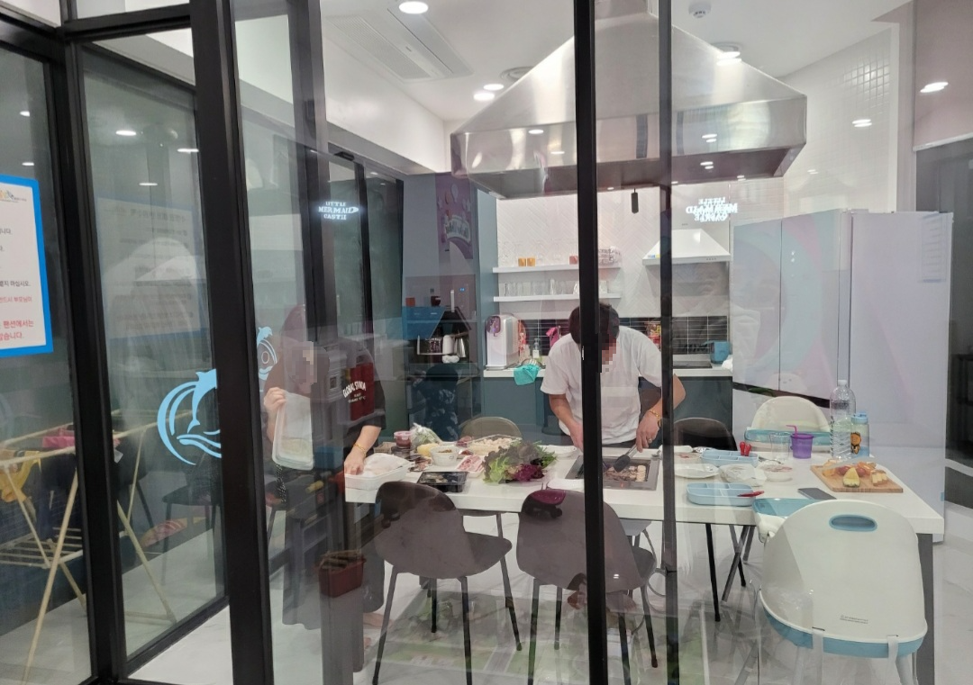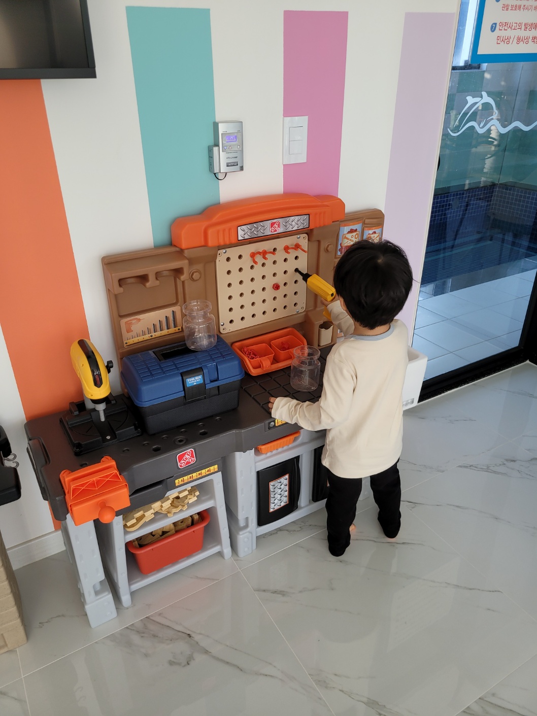 우리는 아이들이 어려서 같이 들어가서 놀았지만 조금 큰 아이들은 노는 걸 통창으로 지켜보면서 어른들은 쉬어도 될 것 같다.