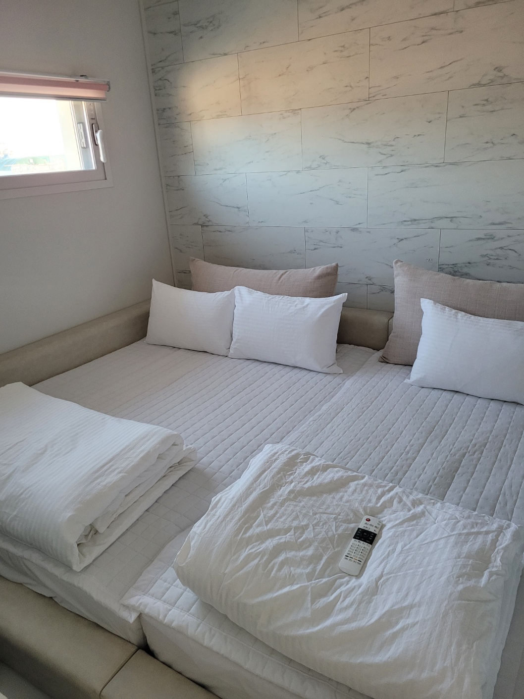 침대로 꽈 찬 방이라 옷 갈아 입고 짐 놓기에는 조금 불편한 부분이 있다.