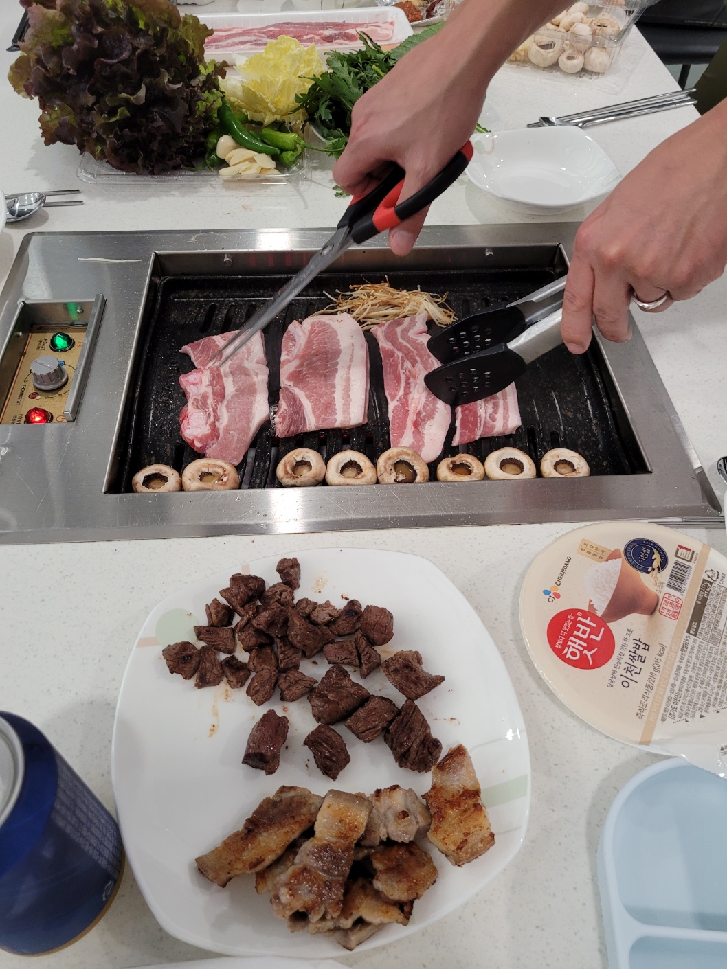 우리가 아이들이랑 노는 동안 친구 남편분이 그릇도 다 씻어놓고 소고기, 돼지고기, 장어를 맛있게 구워주셨다.