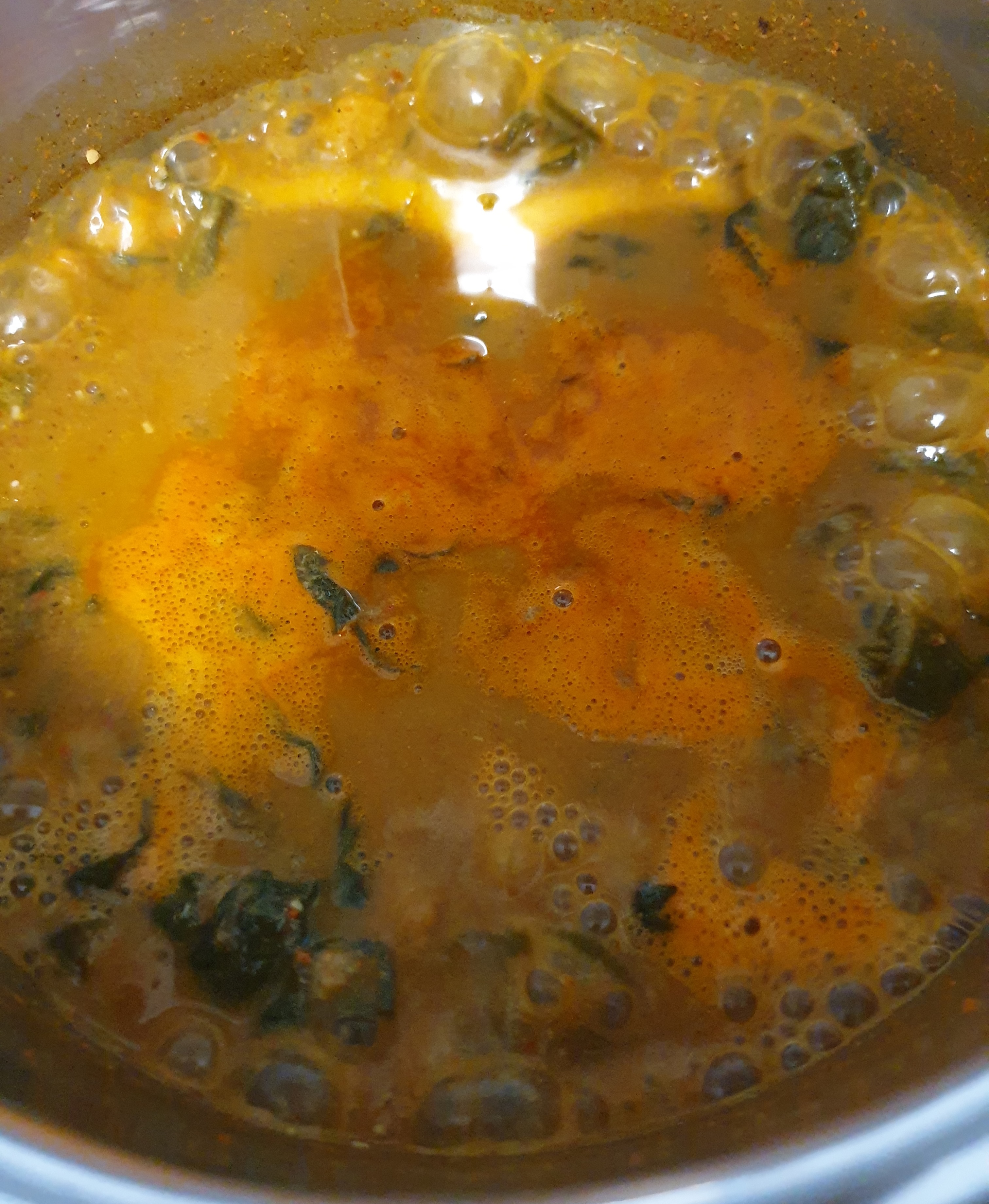 추어탕은 어느 정도 해동한 후 바로 냄비에 끓여 줬어요