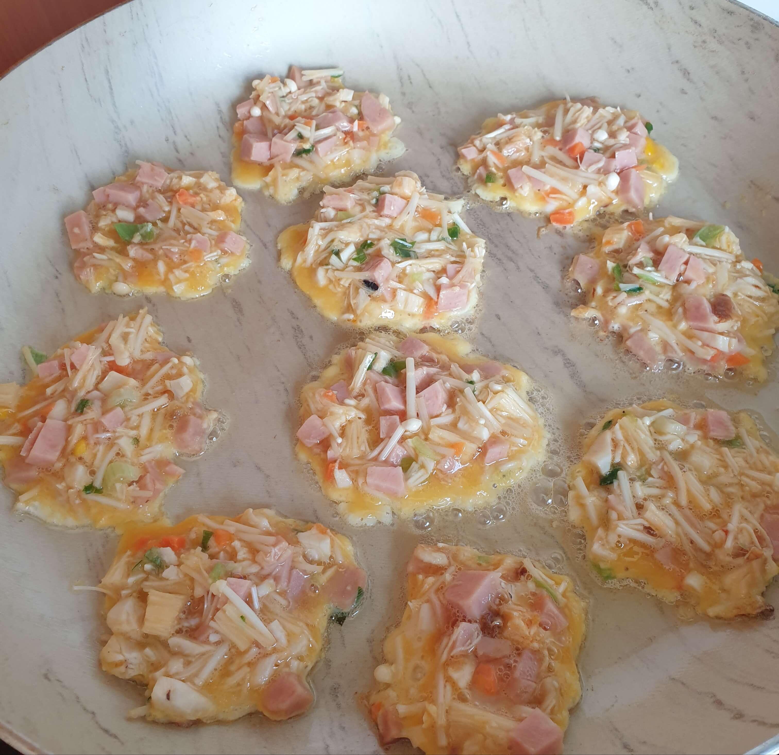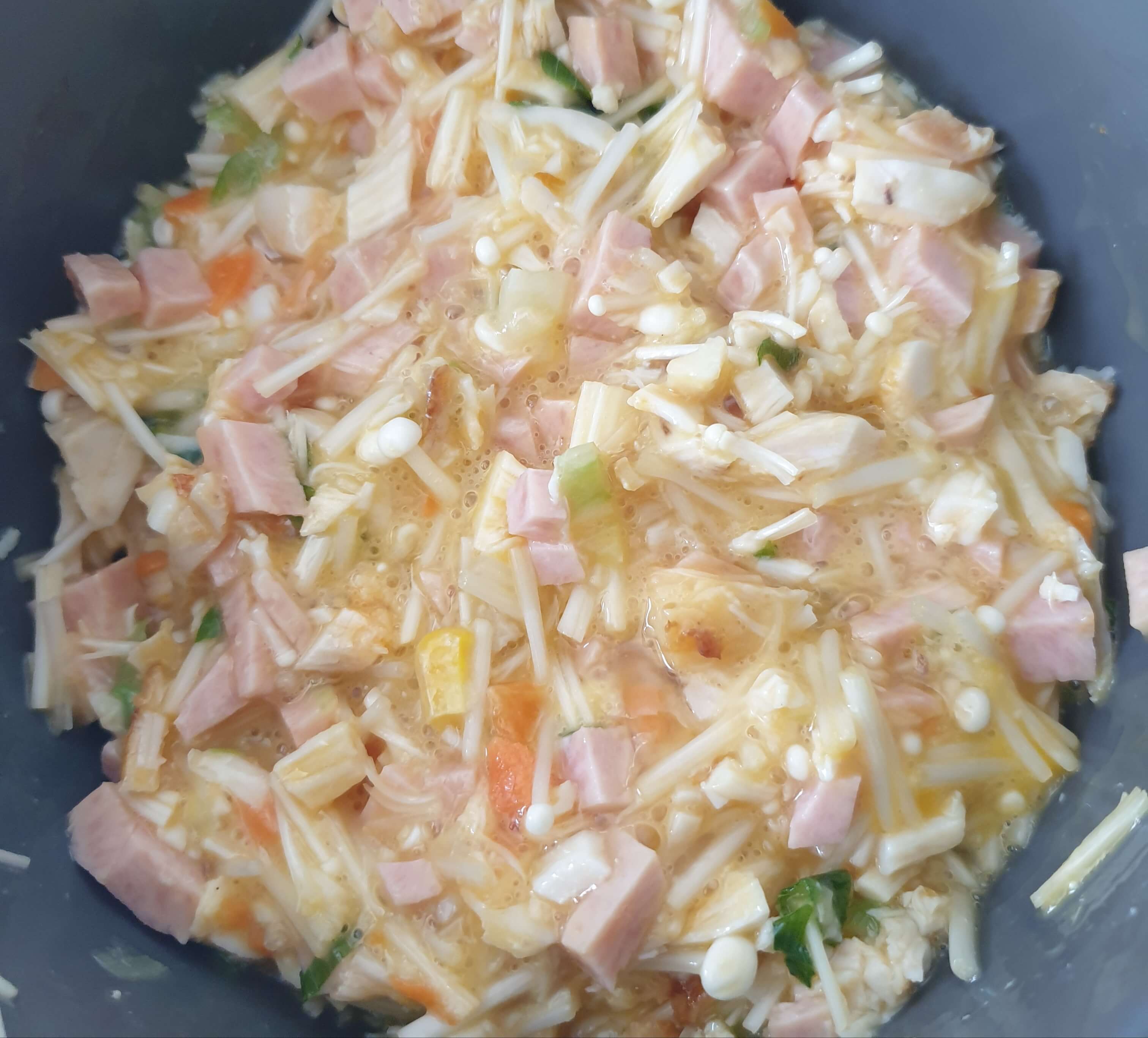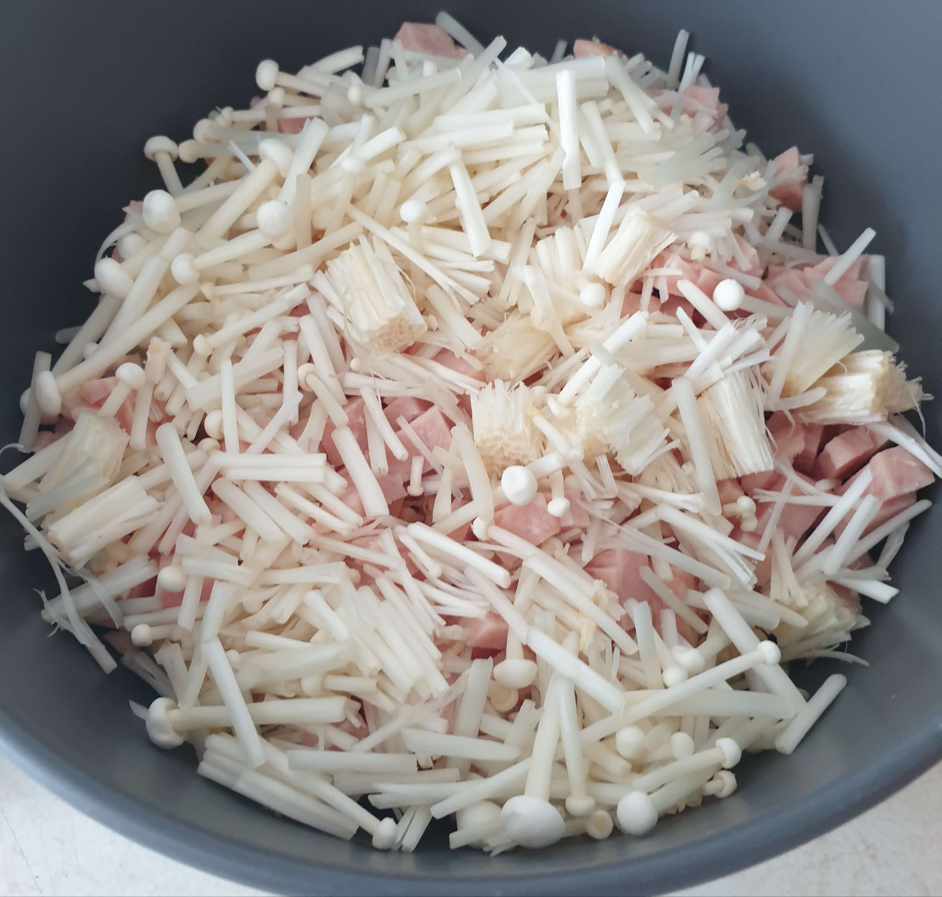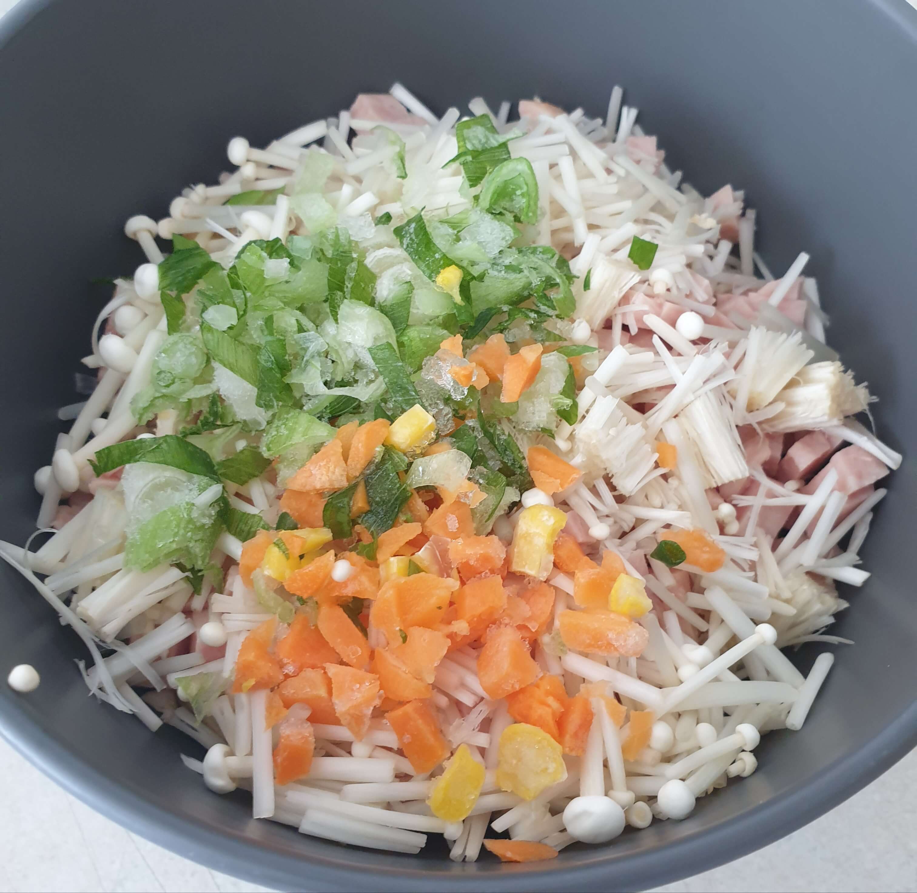 스팸과 팽이버섯 다른 여러 가지 재료가 들어가서