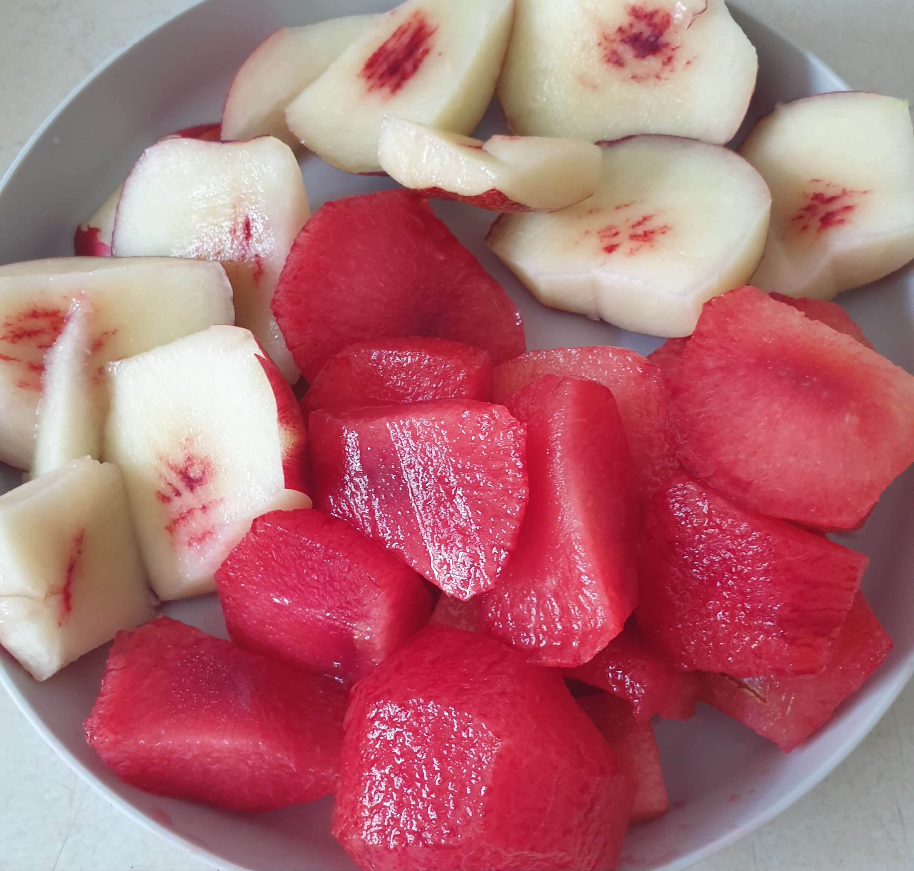 자두껍질은 깎아서 사용했어요.