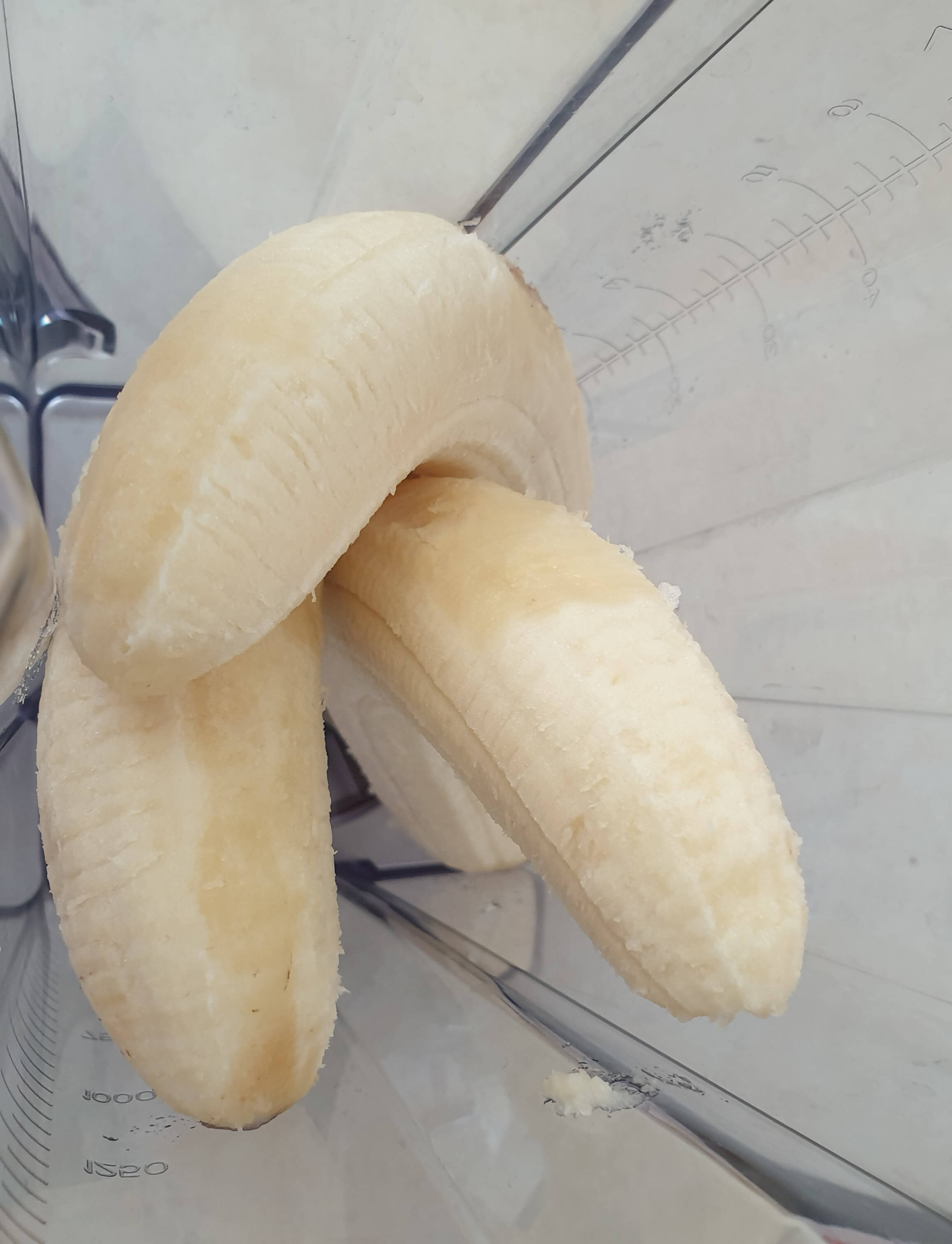 바나나 껍질을 벗겨 믹서에 넣어 주세요.