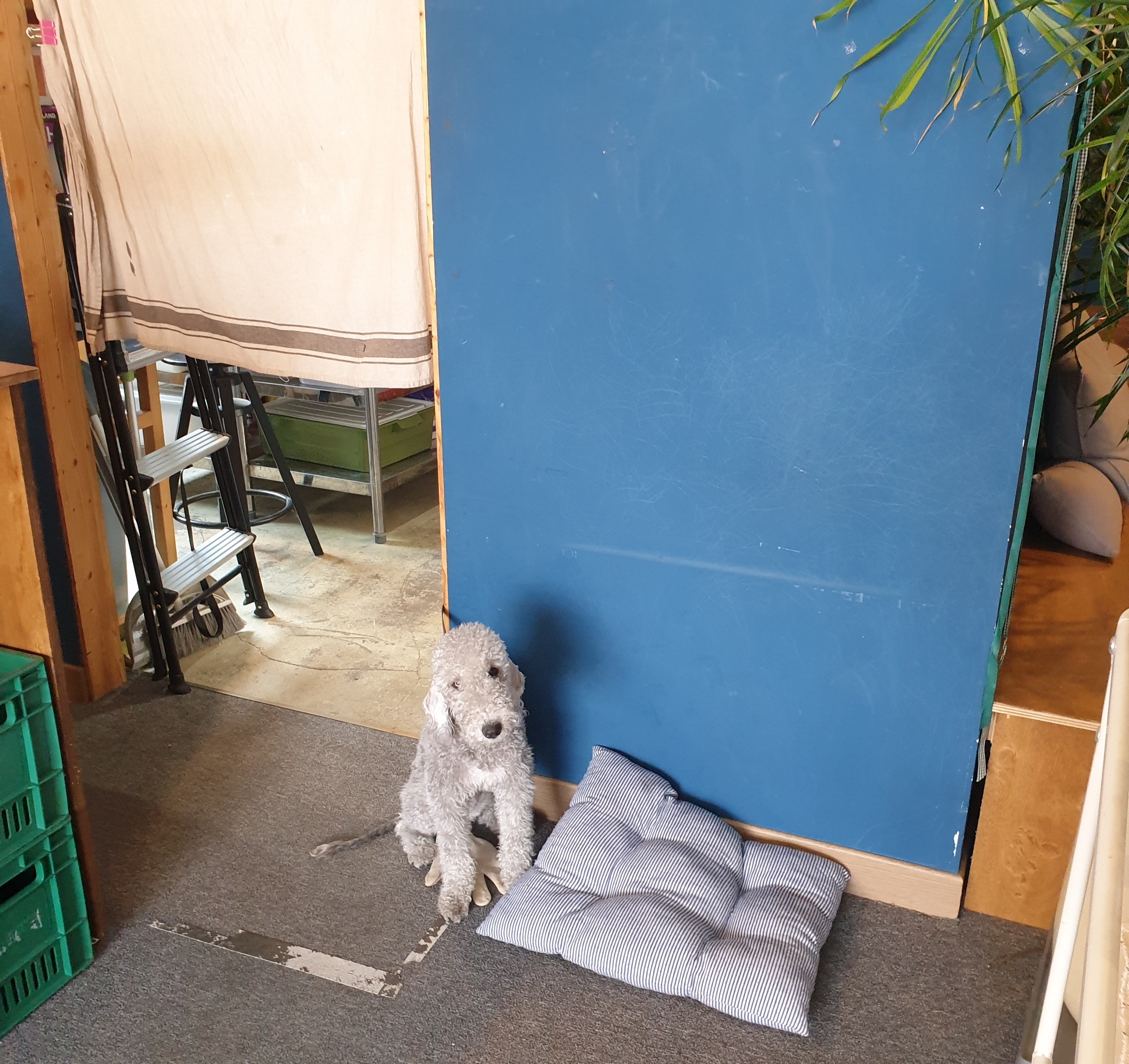 겸댕이 강아지는 아침에 커피 사러 방문할 때마다 있었다.