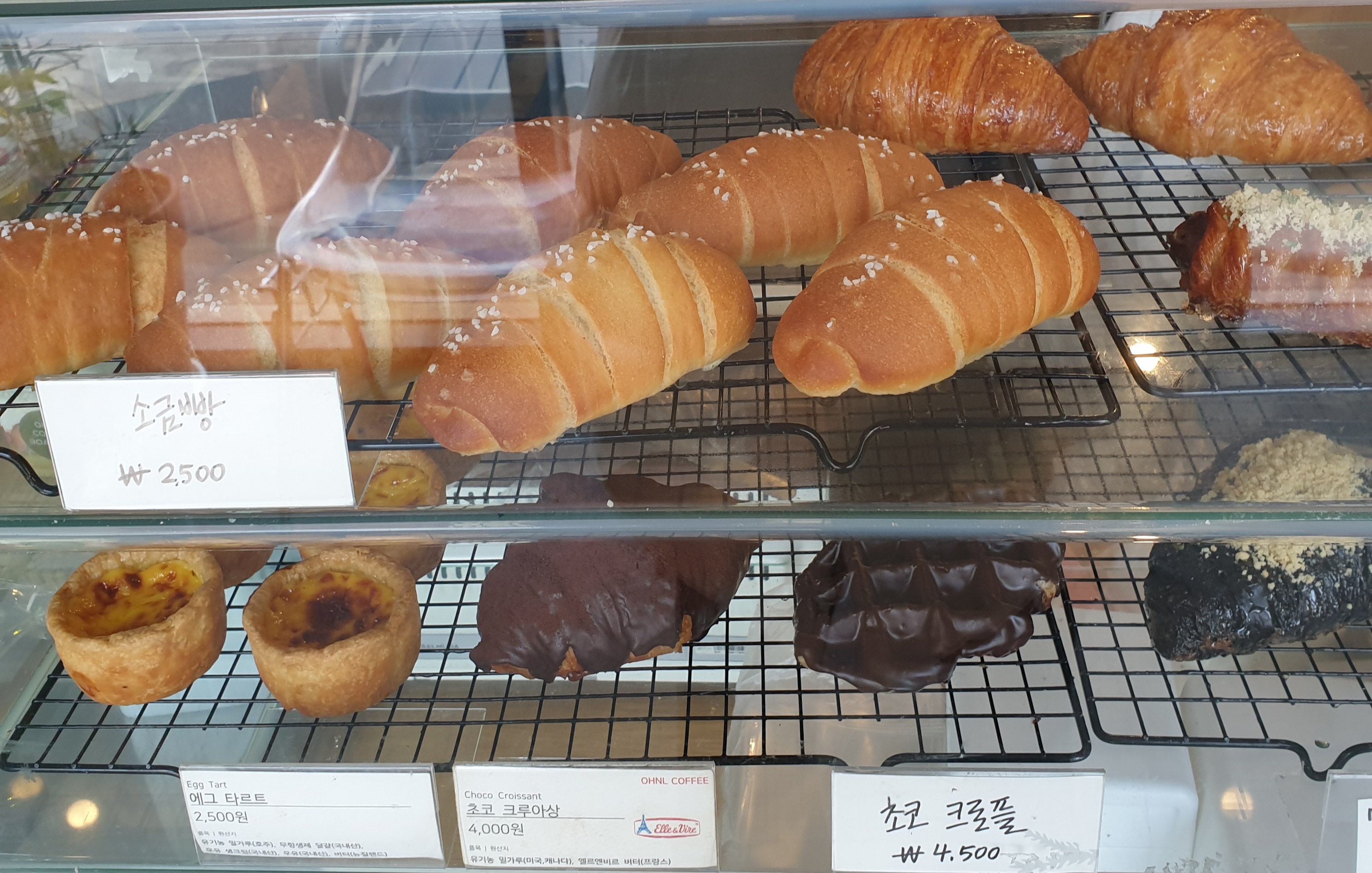 소금빵, 에그타르트, 초코 크루아상, 초코 크로플도 판매하신다.