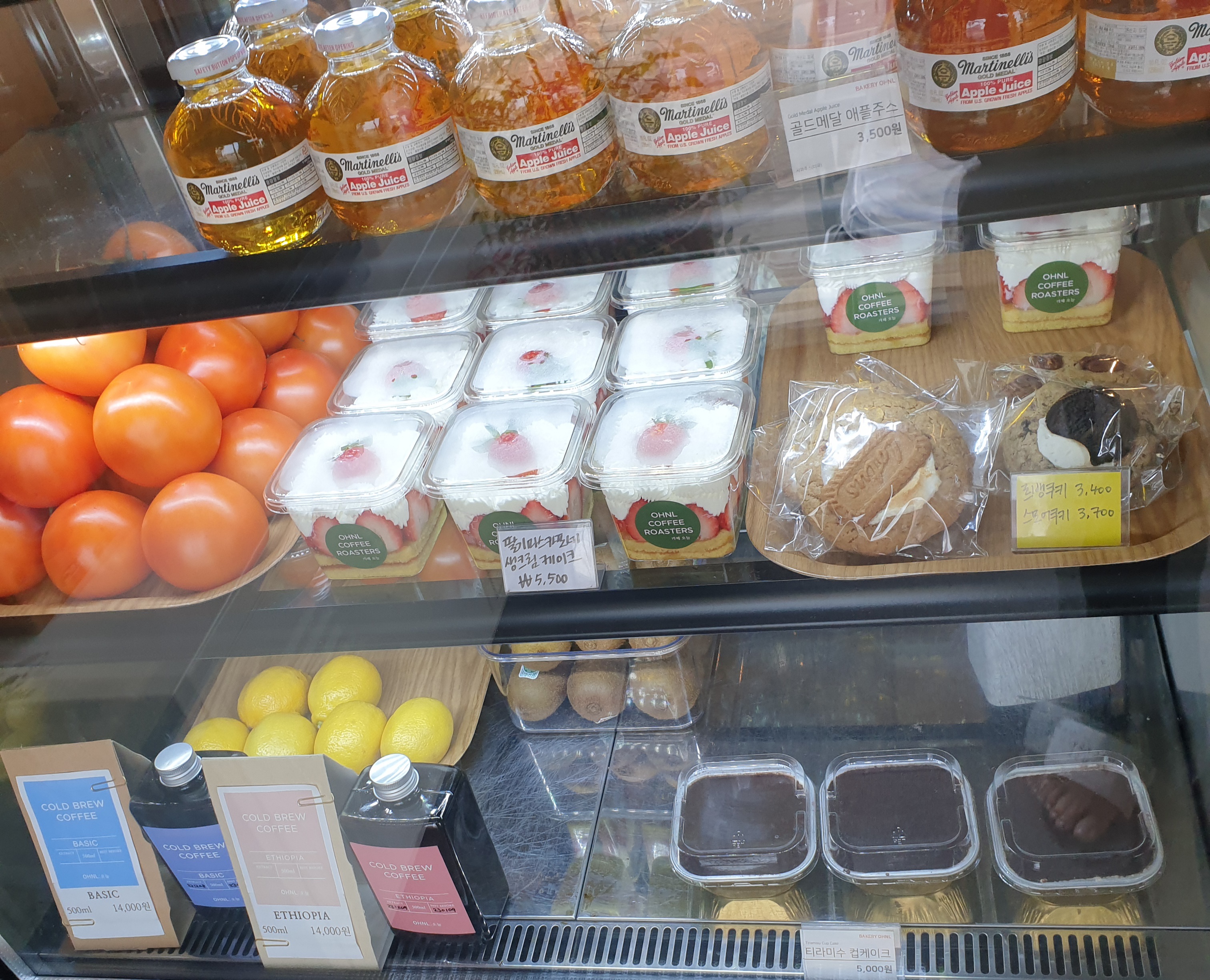 애플주스, 딸기마스카포네 생크림 케이크, 르뱅쿠키, 티라미수도 판매하시고