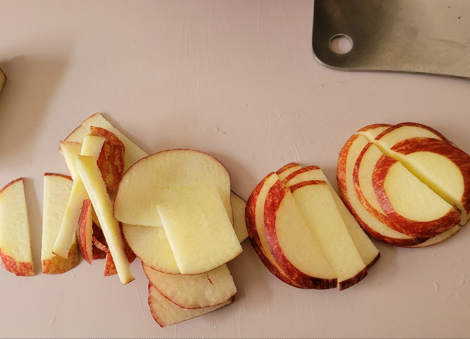 사과 1/2개도 반달모양으로 썰어주세요.