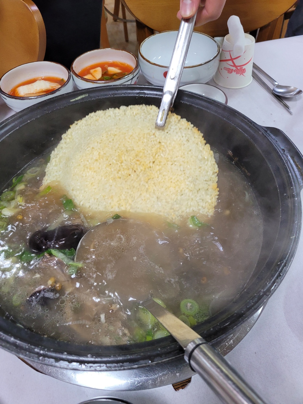 고기를 다 먹으면 이렇게 누룽지를 넣어주신다.