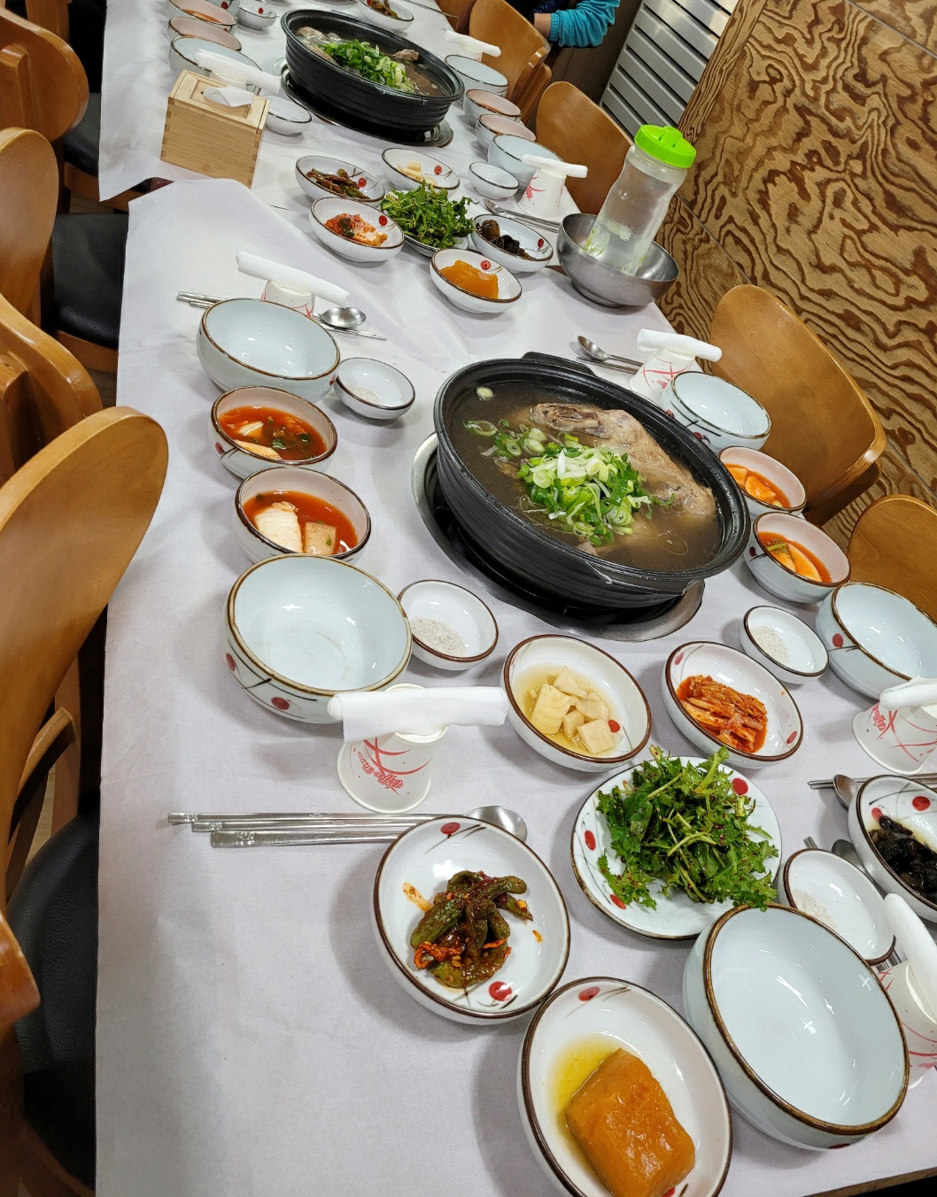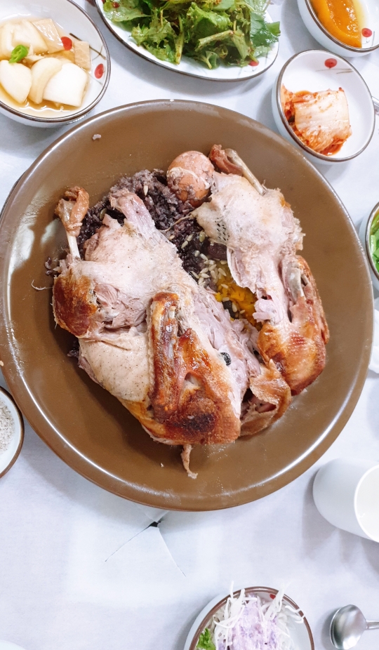 미리 예약하고 갔더니 반찬들은 다 차려 놓으셨고, 우리가 들어가니 한방오리백숙도 바로 내오셨다.