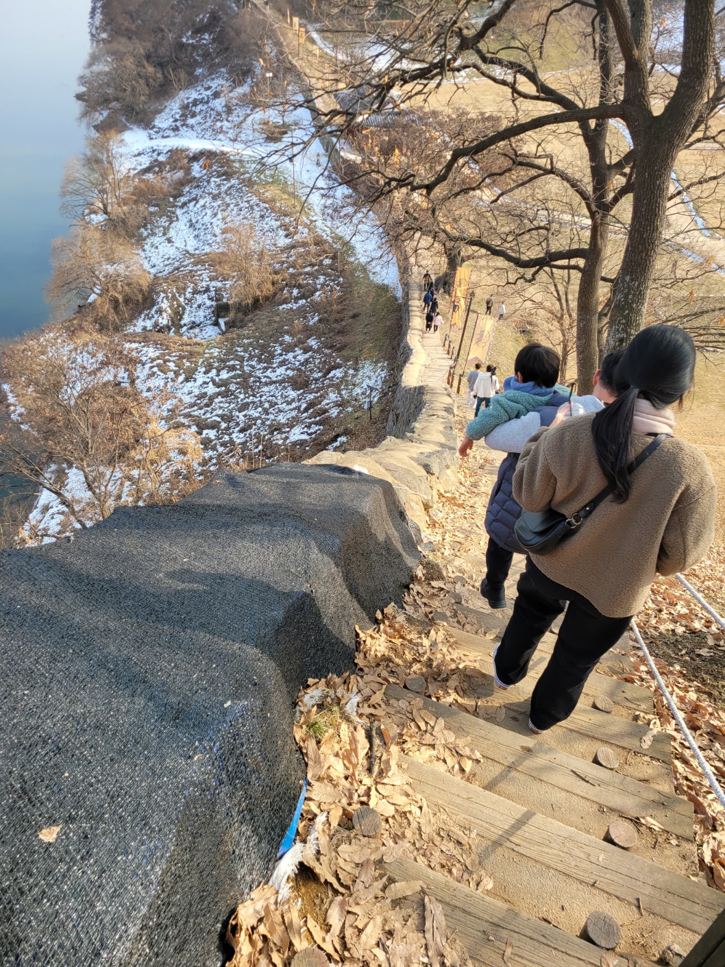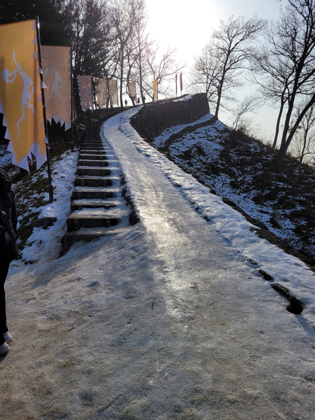 눈이 언 곳도 있었지만 녹은 곳도 많아서 어쨌든 조심조심하며 걸어 다녔다.
