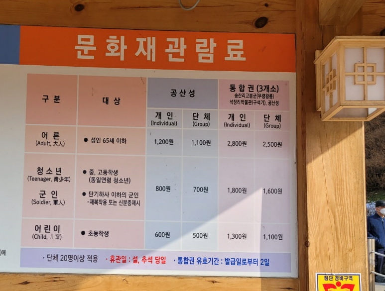 (주차장 - 공산성 매표소 간 도보로 5분)