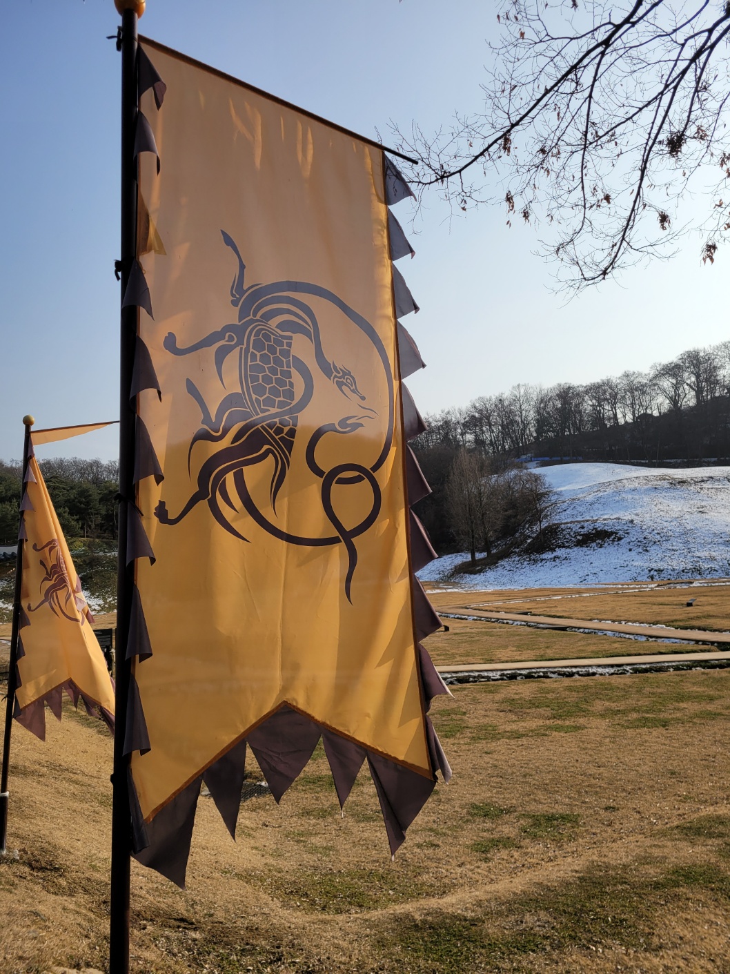 중간중간에 만나는 그림이나 깃발들이 나를 백제시대로 데려온 것 같은 기분이 들게 했다.