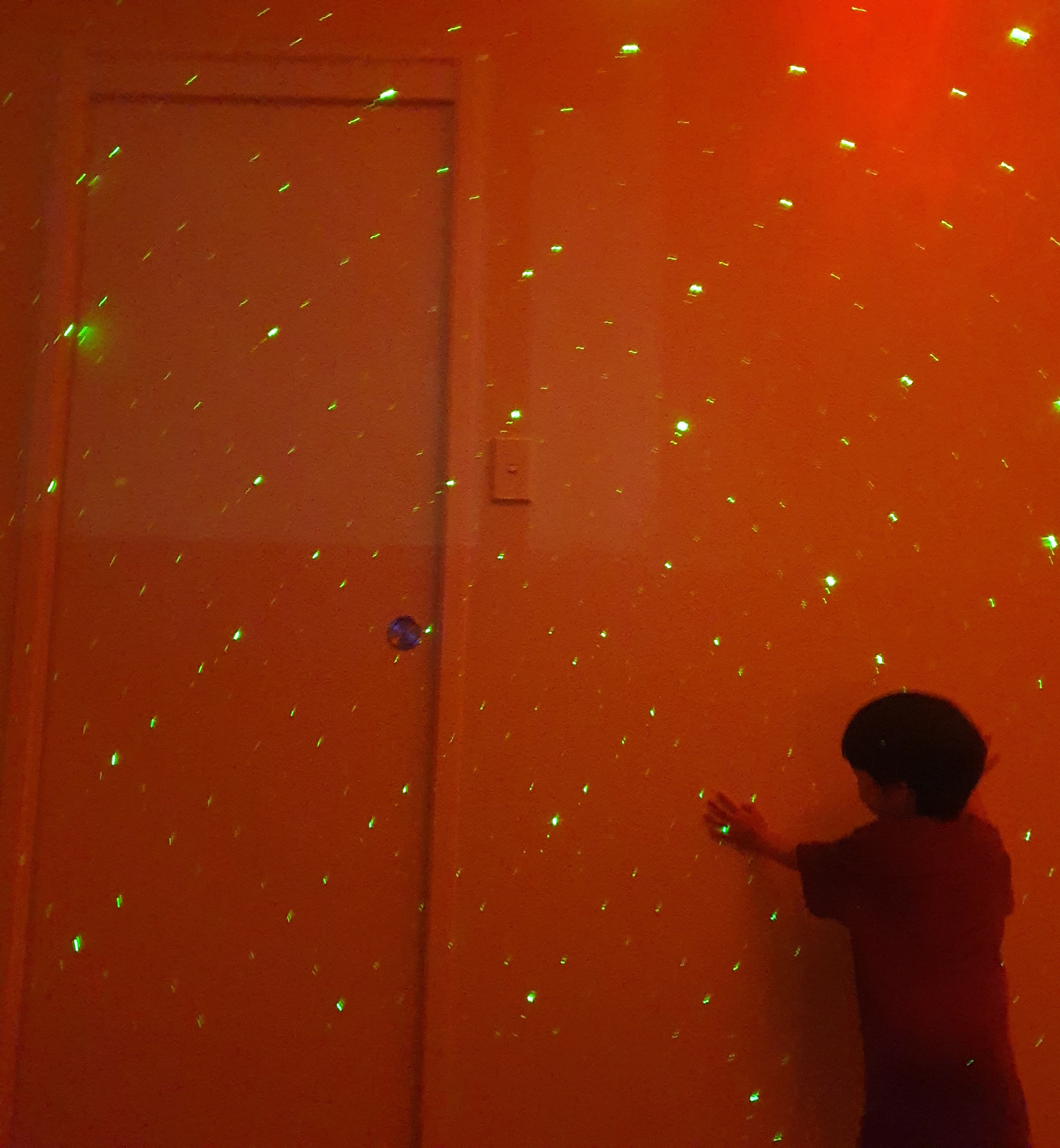 천장을 비춰도 별빛은 벽까지 내려오기 때문에 아이가 별 잡는다고 재미있어한다 :)