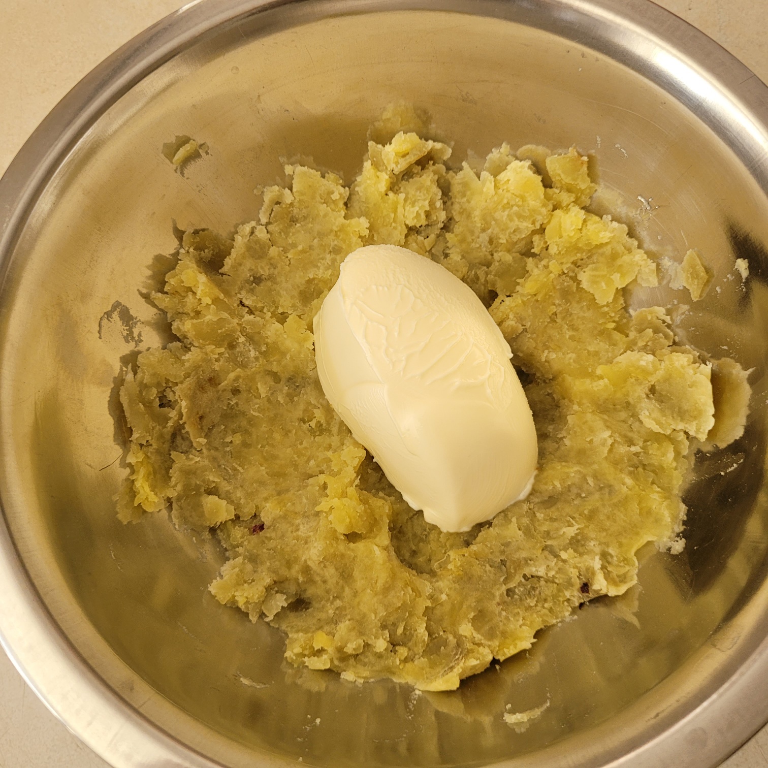 껍질을 벗기고 마구 으깨주세요.