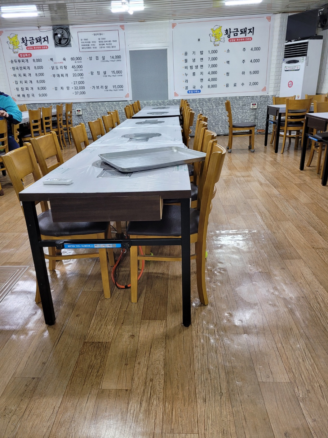 좌석은 신발 신고 앉을 수 있는 테이블석과 신발 벗고 앉을 수 있는 테이블 석이 있다.