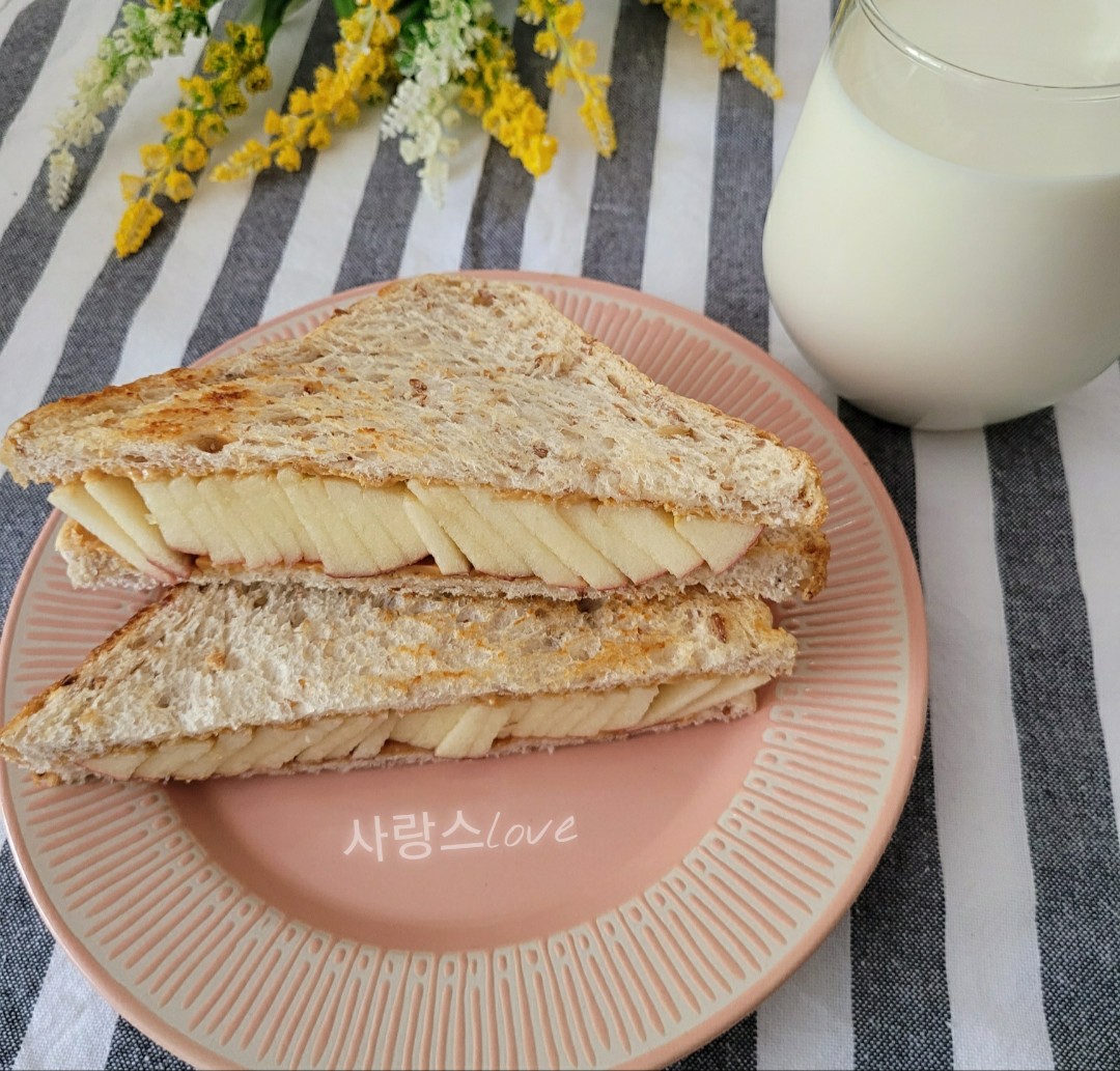 오늘의 요리 오늘은 외숙모께 배운 사과 샌드위치를 만들어 볼게요 2019년에 외할아버지와 마지막으로 함께 먹은 음식 중에 하나이기도 해요 😢 재료- 계란, 소금, 후추, 마요네즈, 머스터드 딸