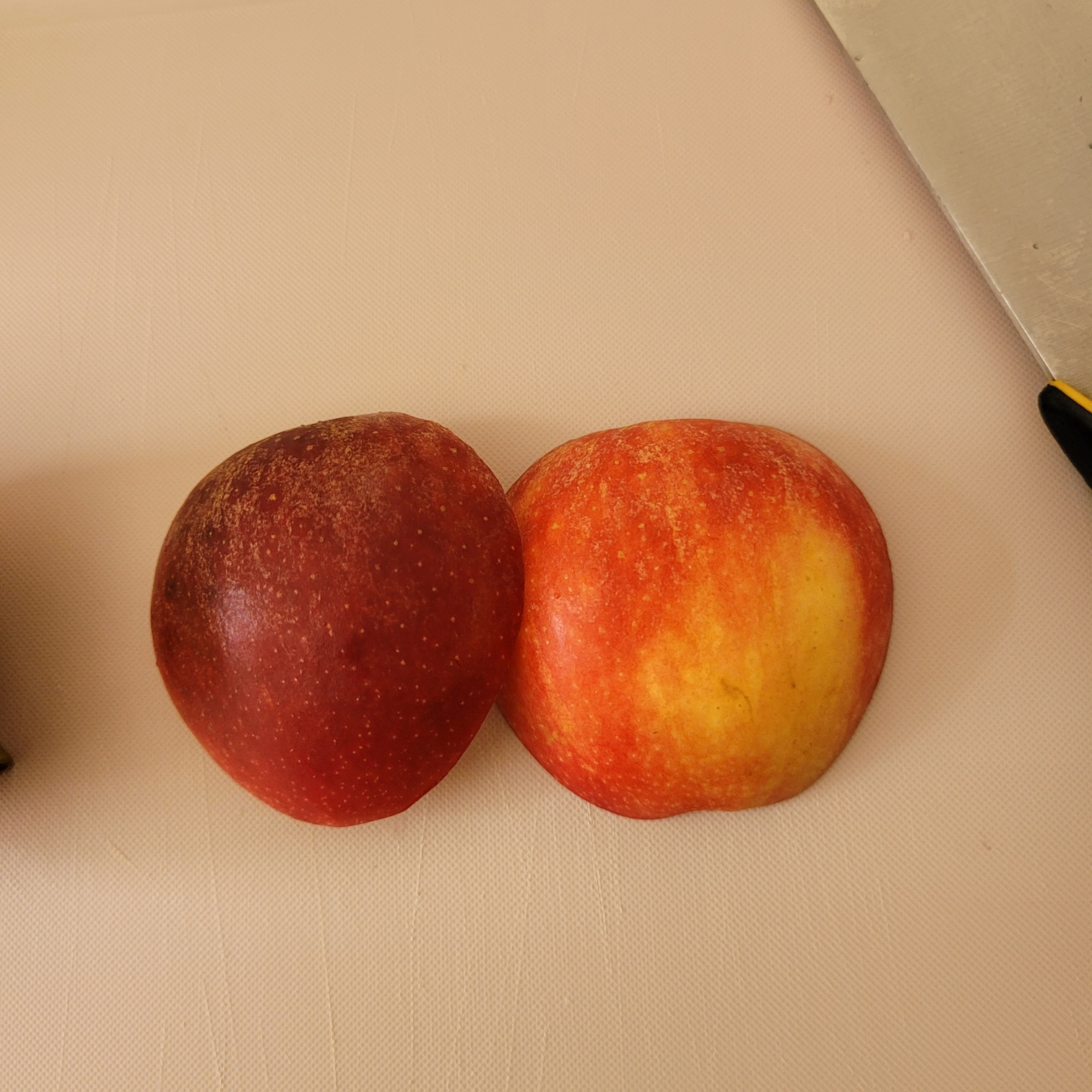 사과를 깨끗이 씻어 물기를 닦아 준비해 주세요.