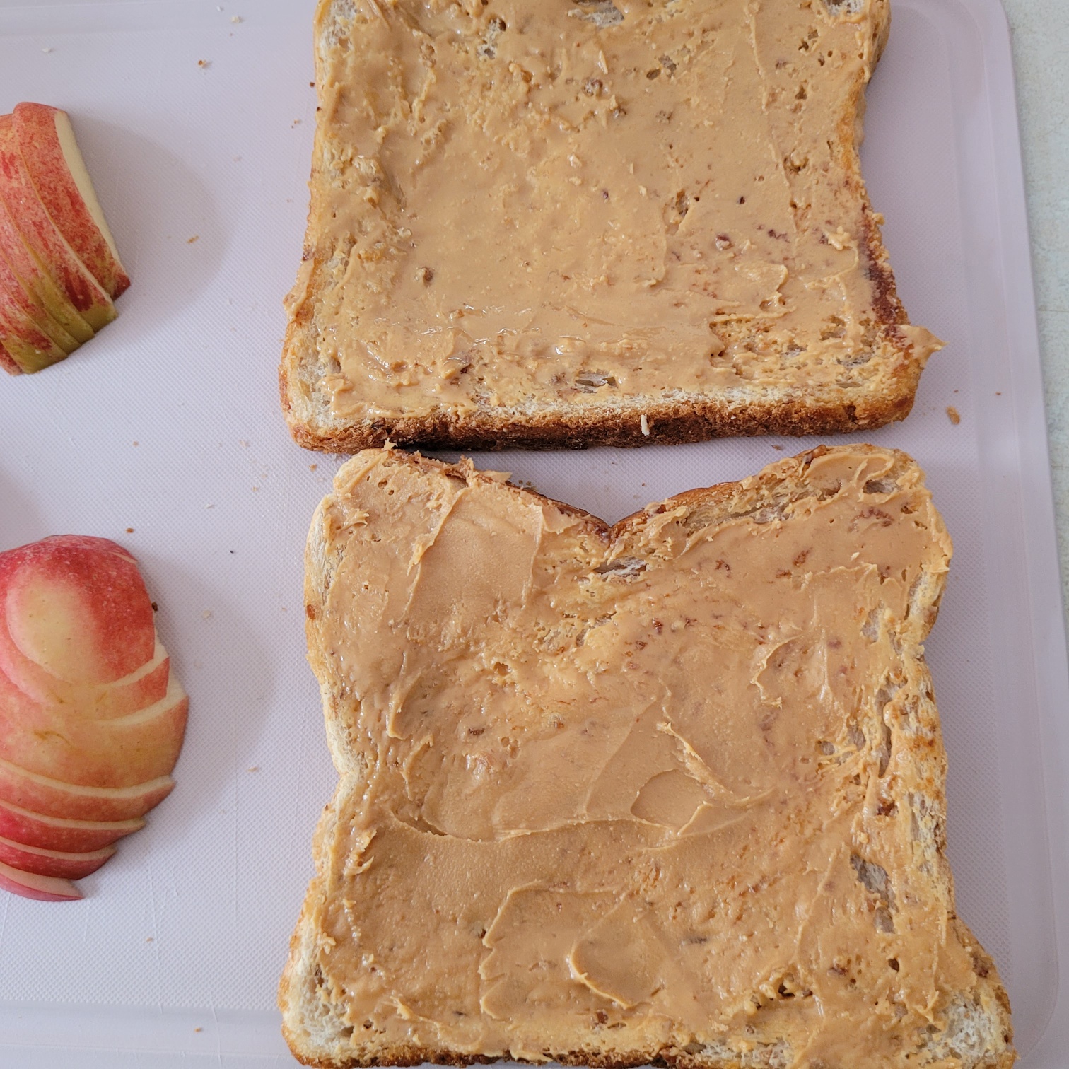 노슈가 땅콩잼을 각각 한쪽씩 발라주었어요.
