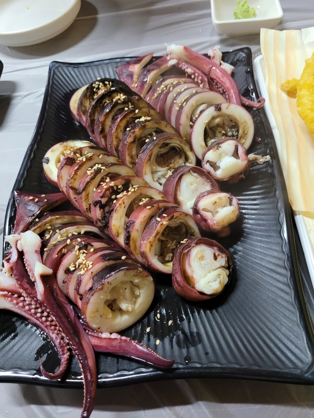 부분 부분 맛이 조금씩 다른데 어쨌든 내장은 고소하고 오징어는 부드러운 게 넘 맛있다.