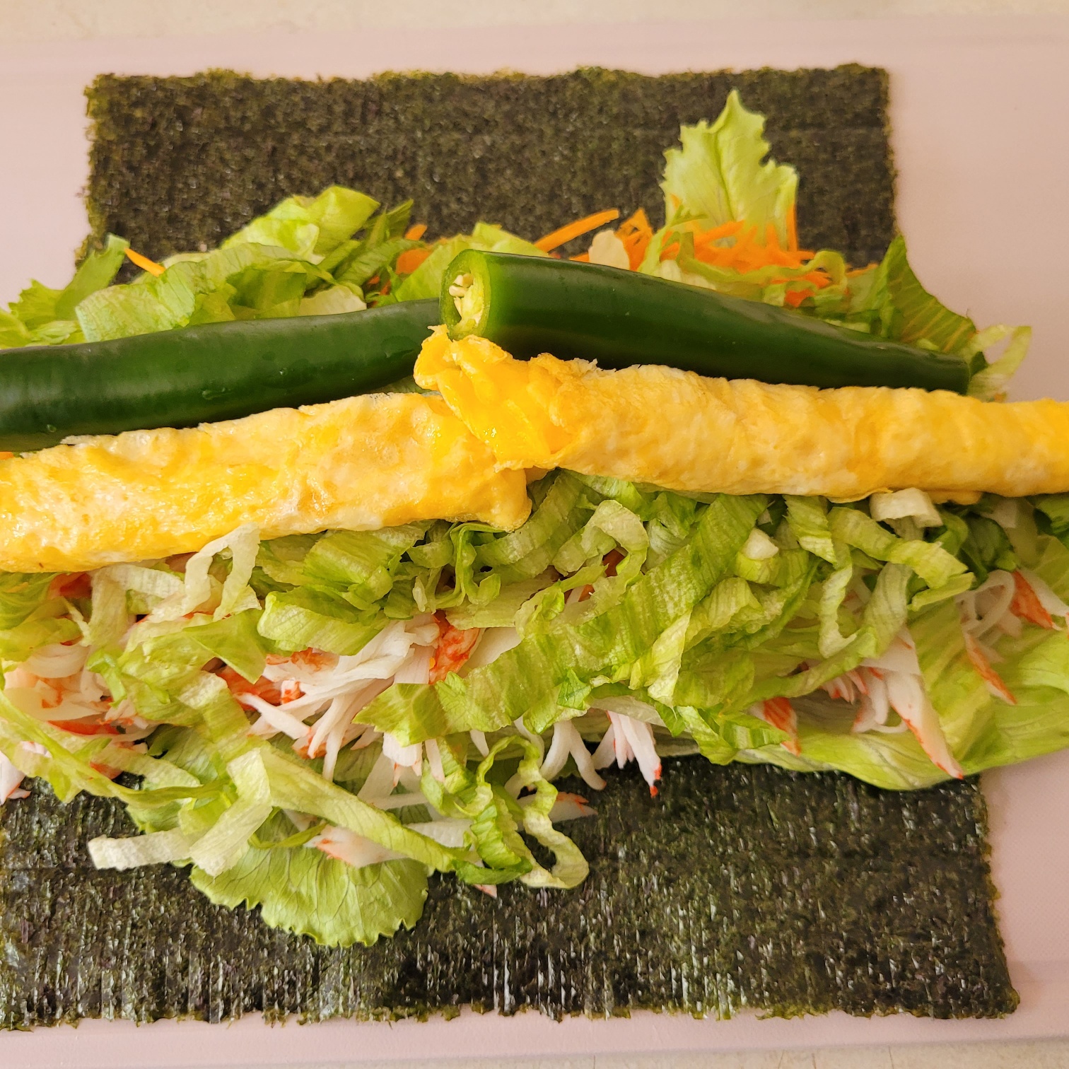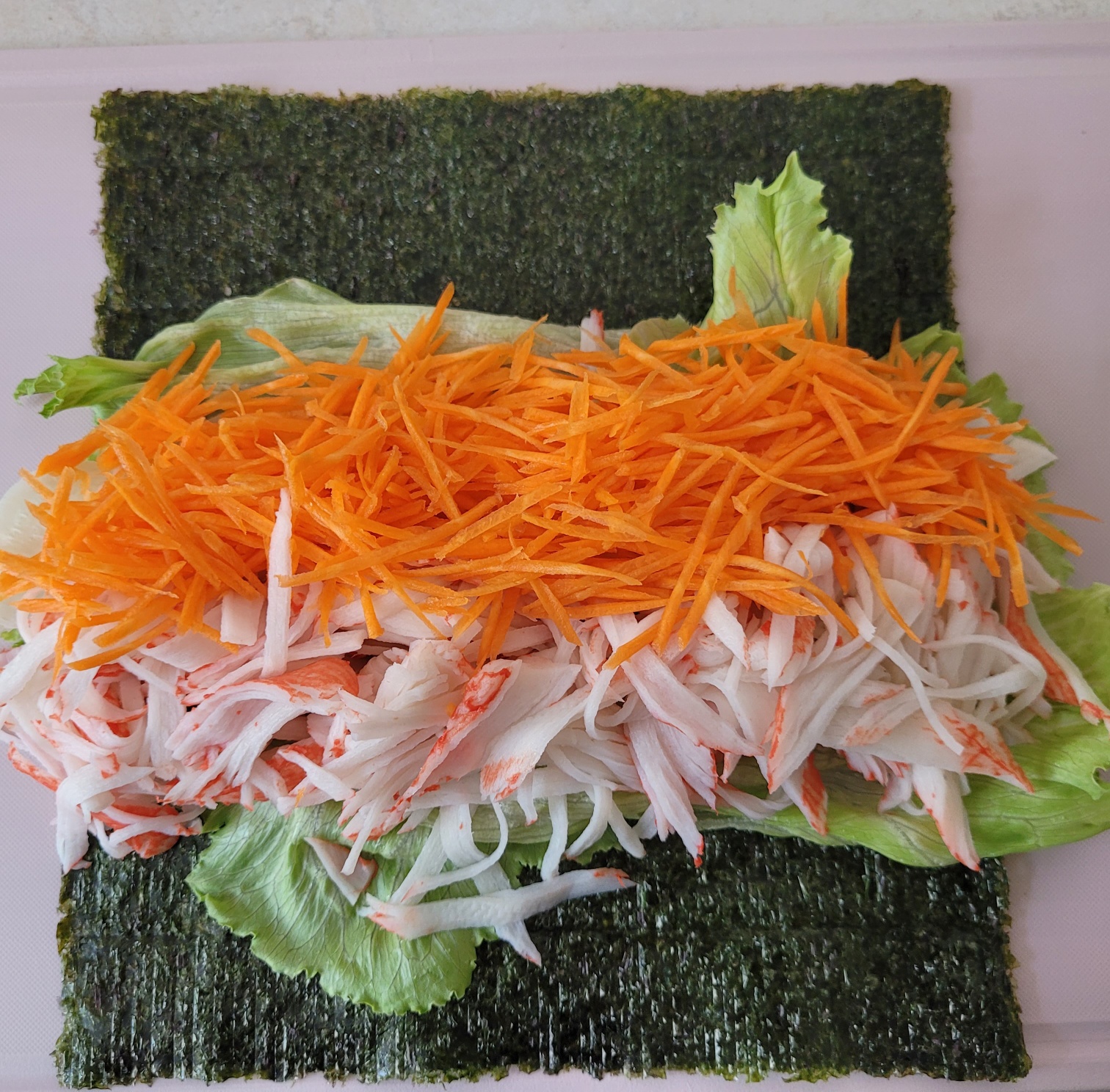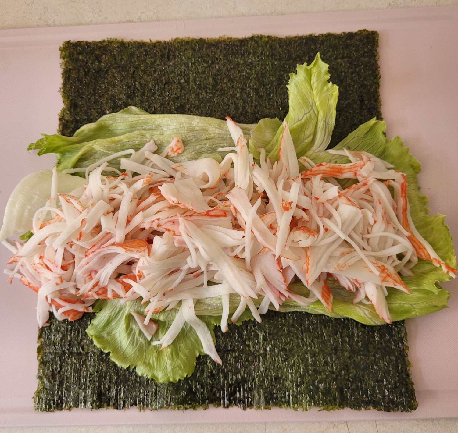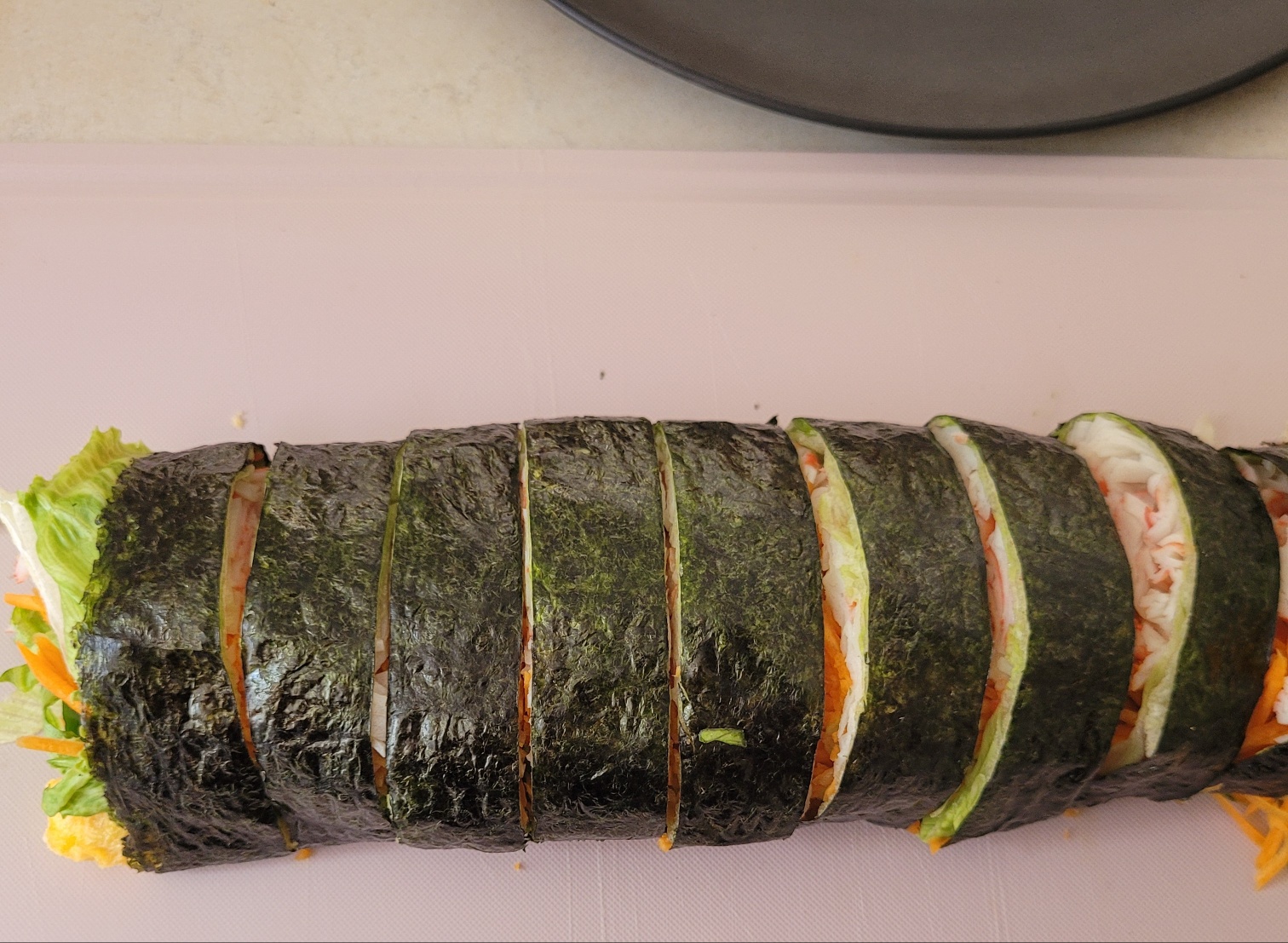 크래미 샐러드 김밥을 만들었어요.