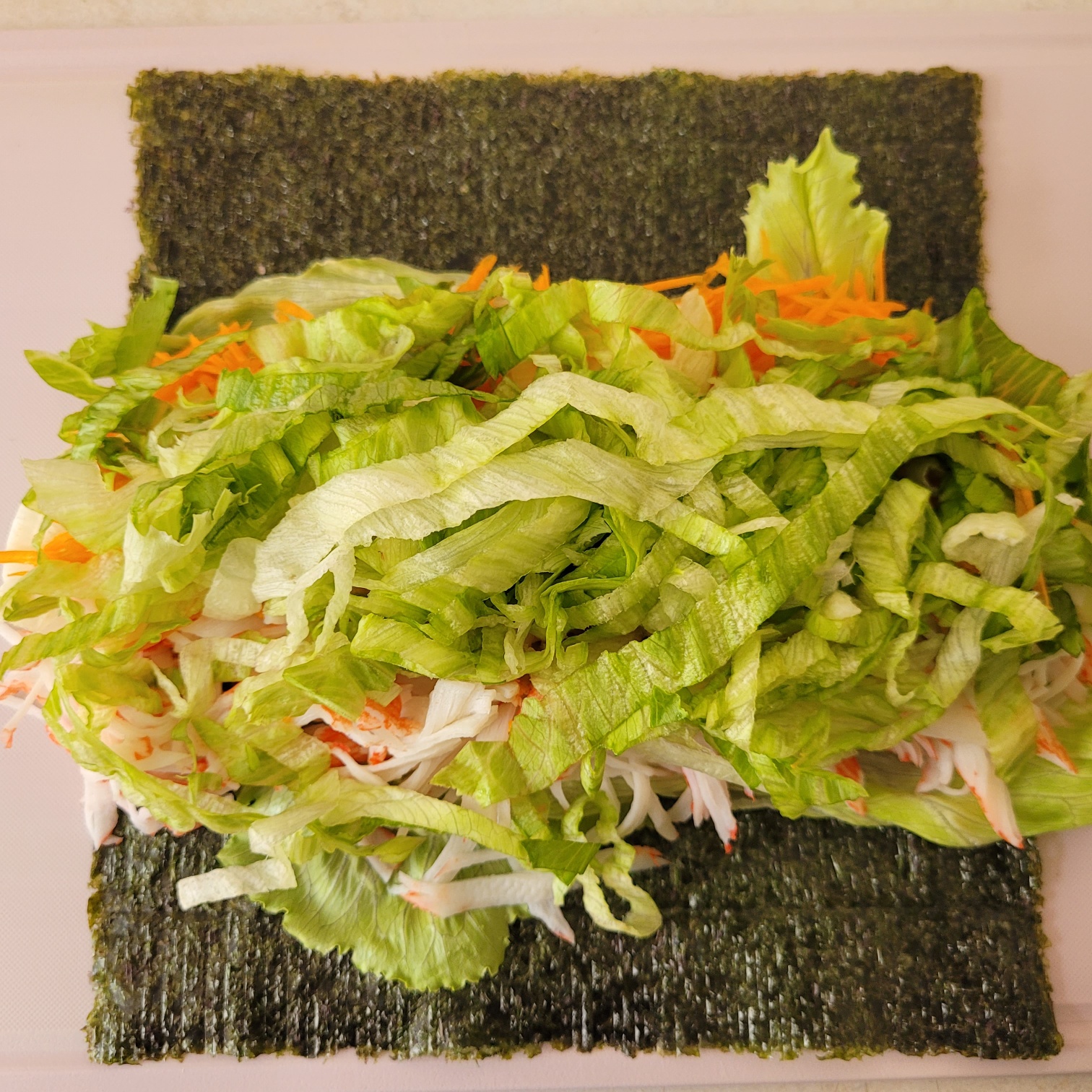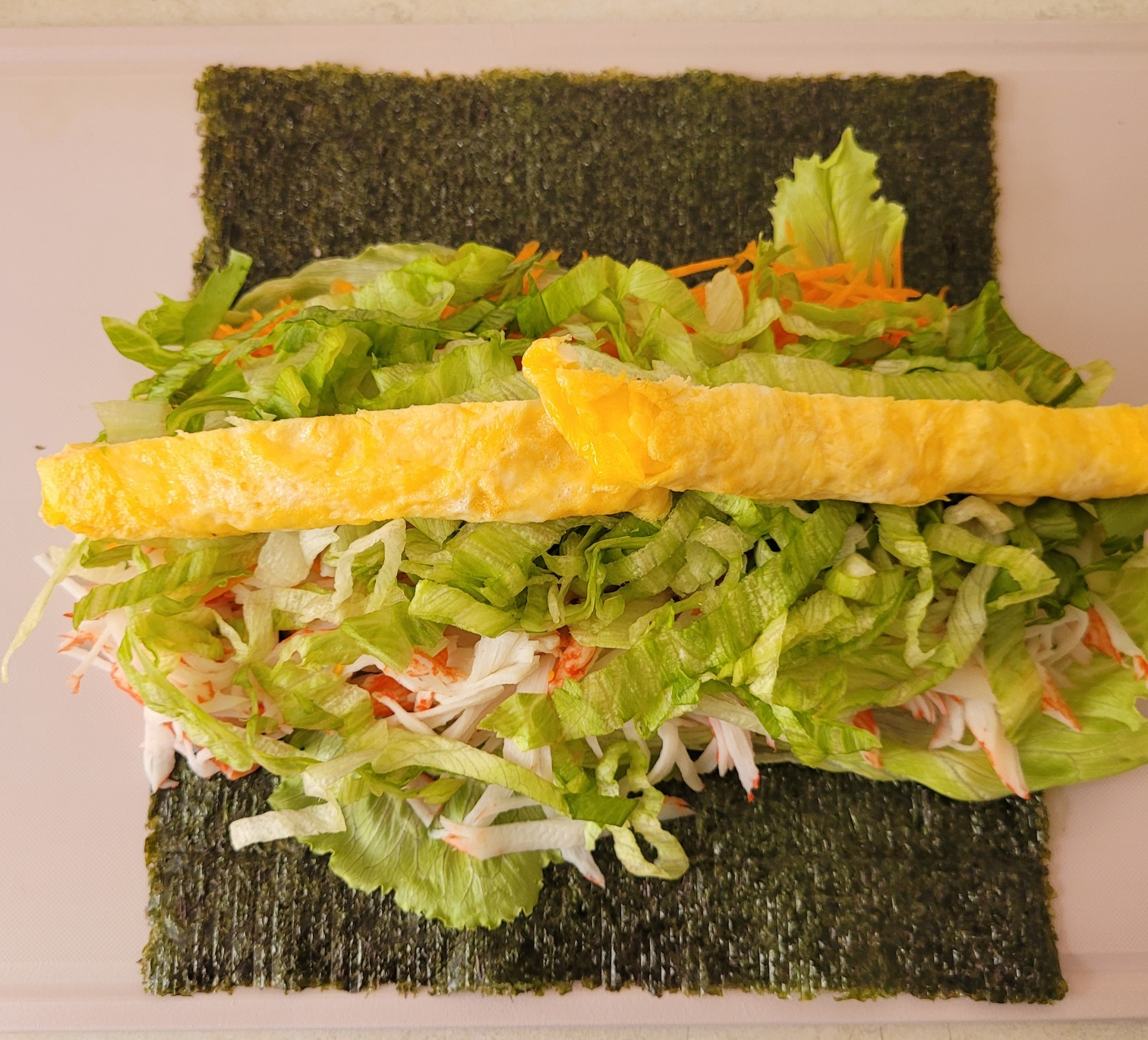 어쩌다 보니 왕따시만한 샐러드 김밥이 완성됐네요 ㅎㅎ