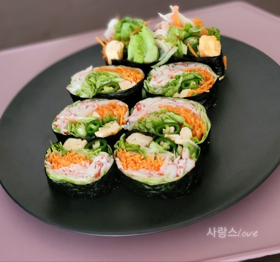김 위에 깔 양상추는 두고