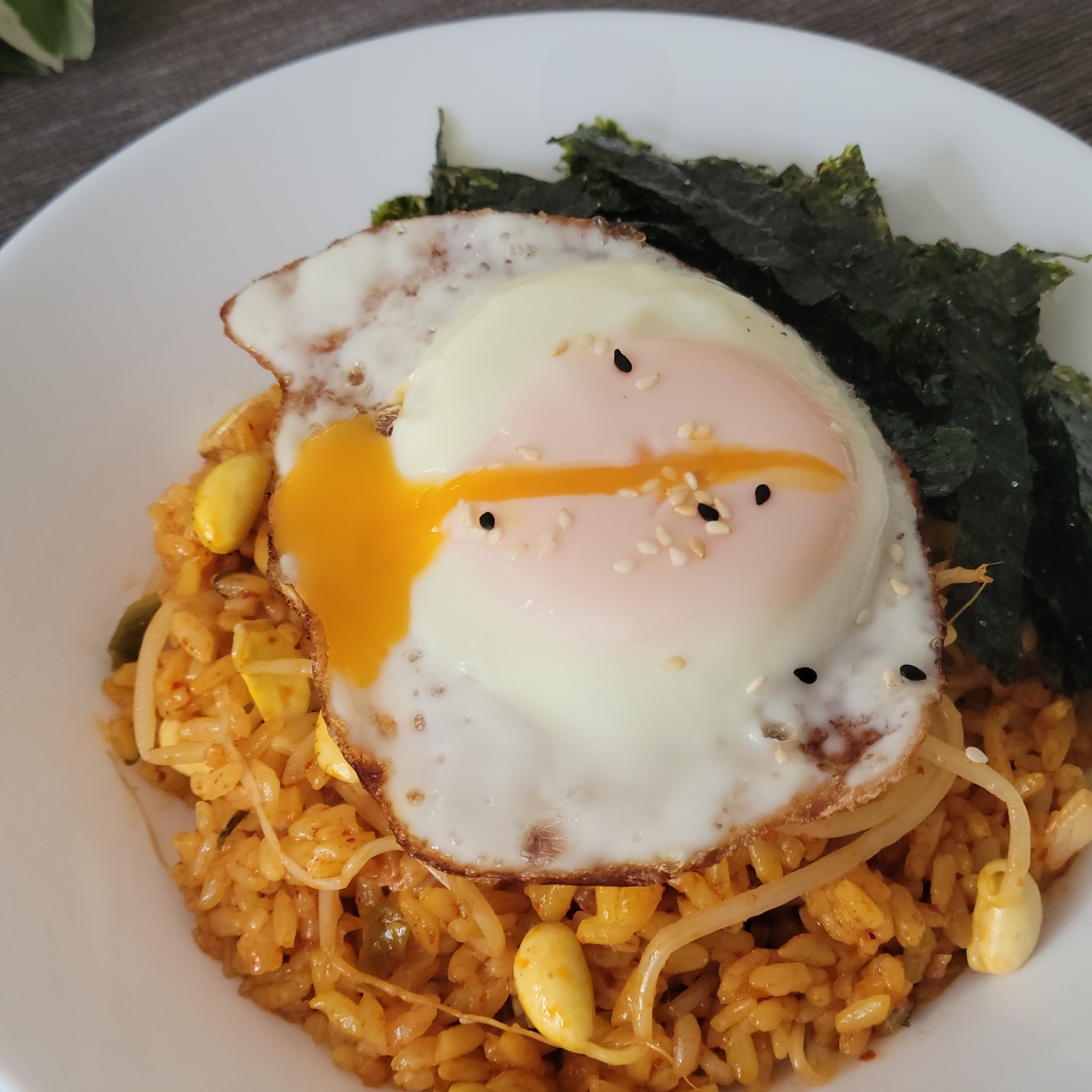 계란프라이와 김가루를 취향껏 올려주세요.