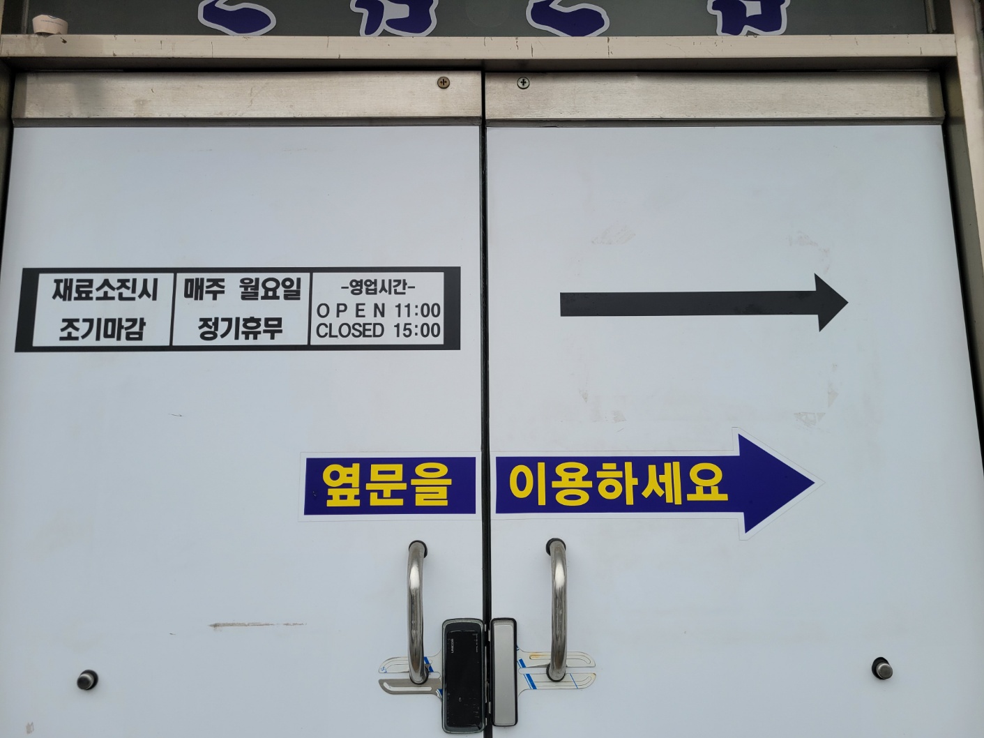 새로 단 간판 전에 기존의 간판이 식당을 얼마나 오래 운영하셨는지 알려준다.