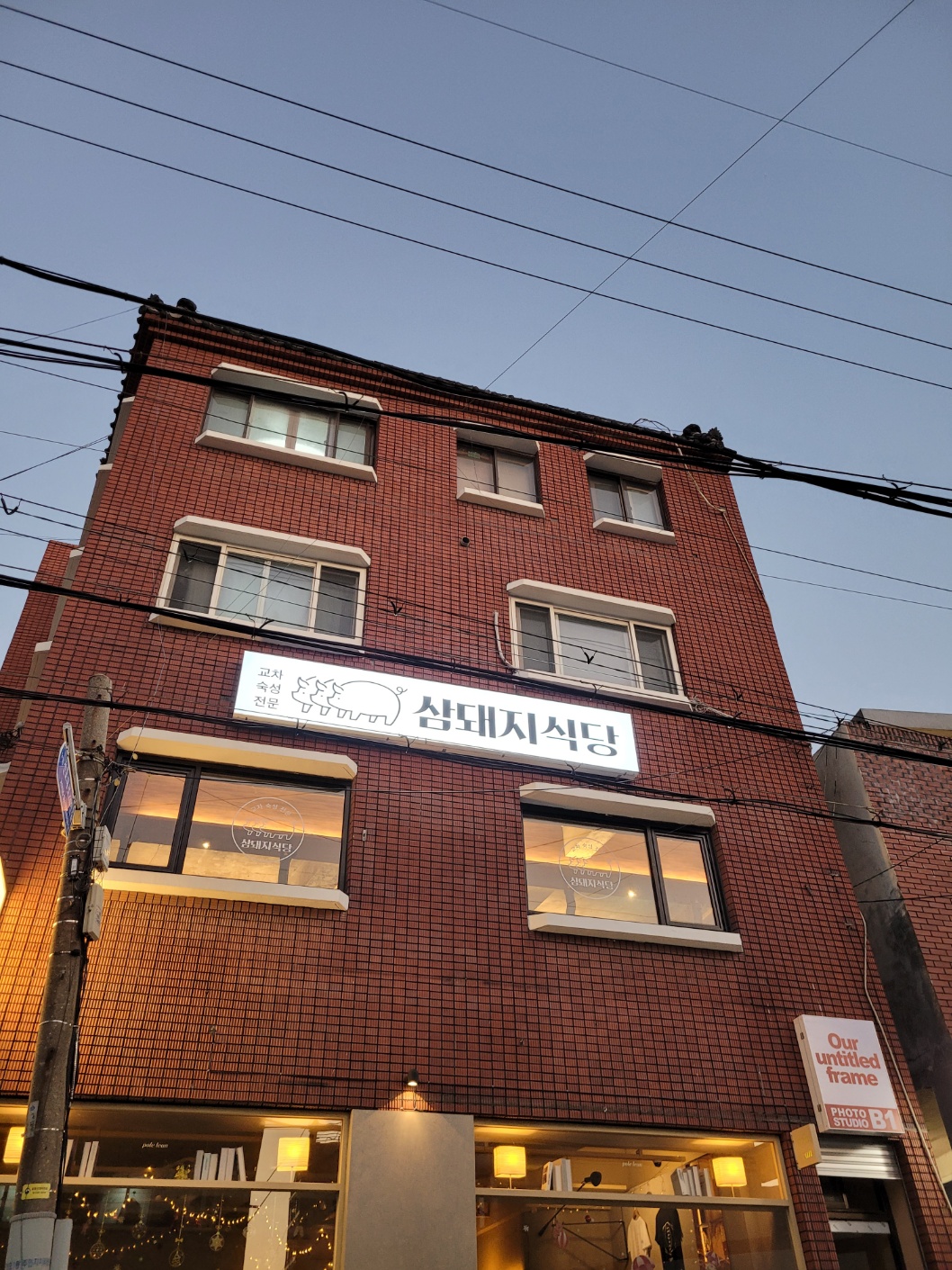 삼돼지 식당은 2층으로 올라가야 한다.