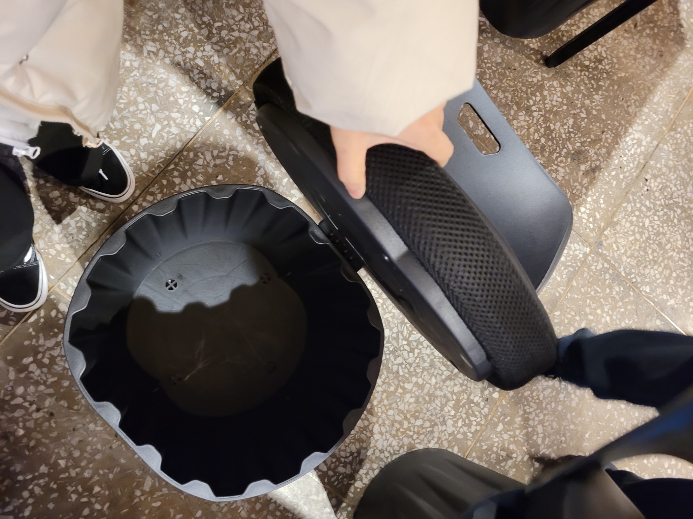 의자에 이렇게 소지품 넣을 수 있는 공간이 있고