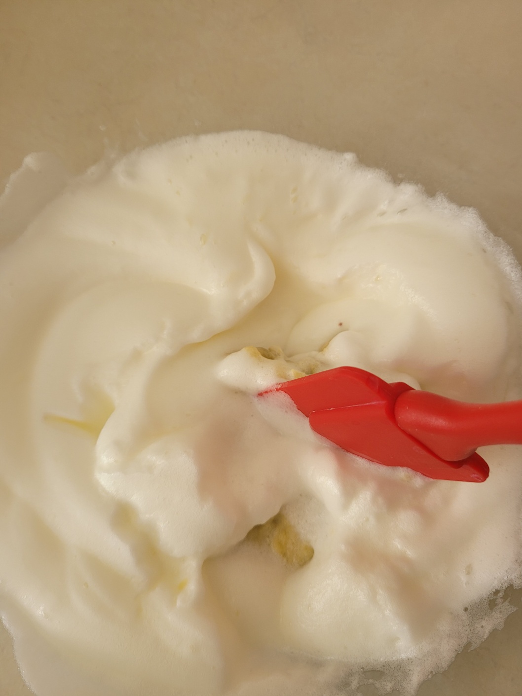 *원래는 반대로 반죽에 머랭을 세 번 정도 나눠가며 섞는 게