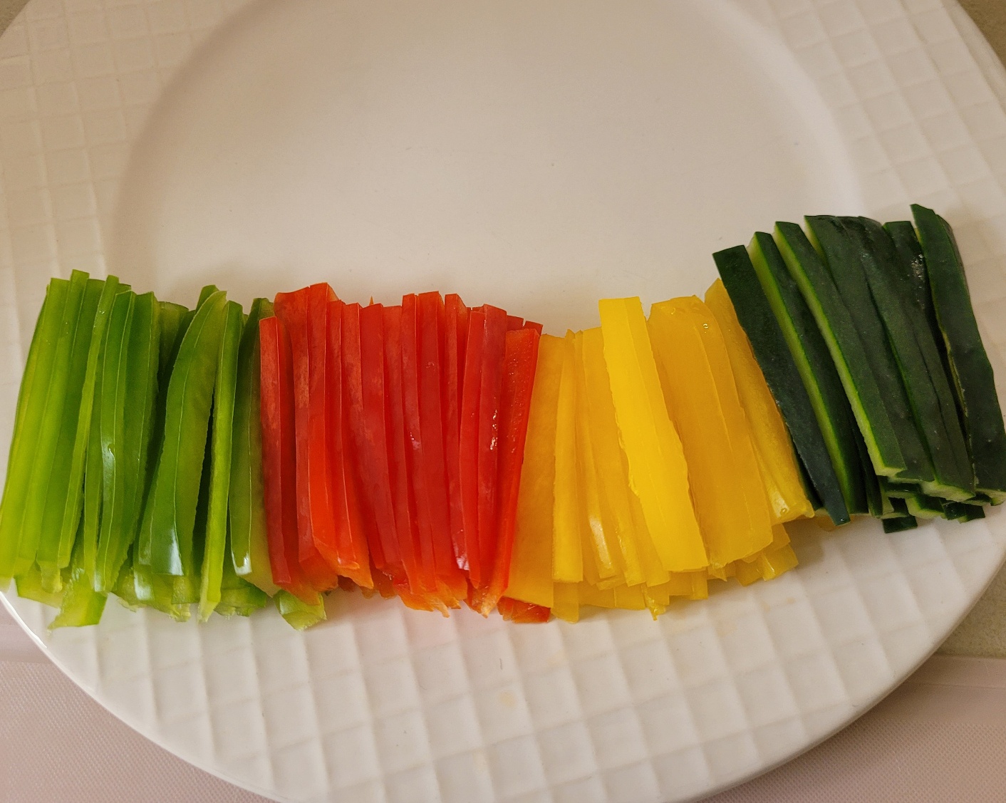 키를 비슷하게 맞춰 썰어서 접시에 올려주세요.
