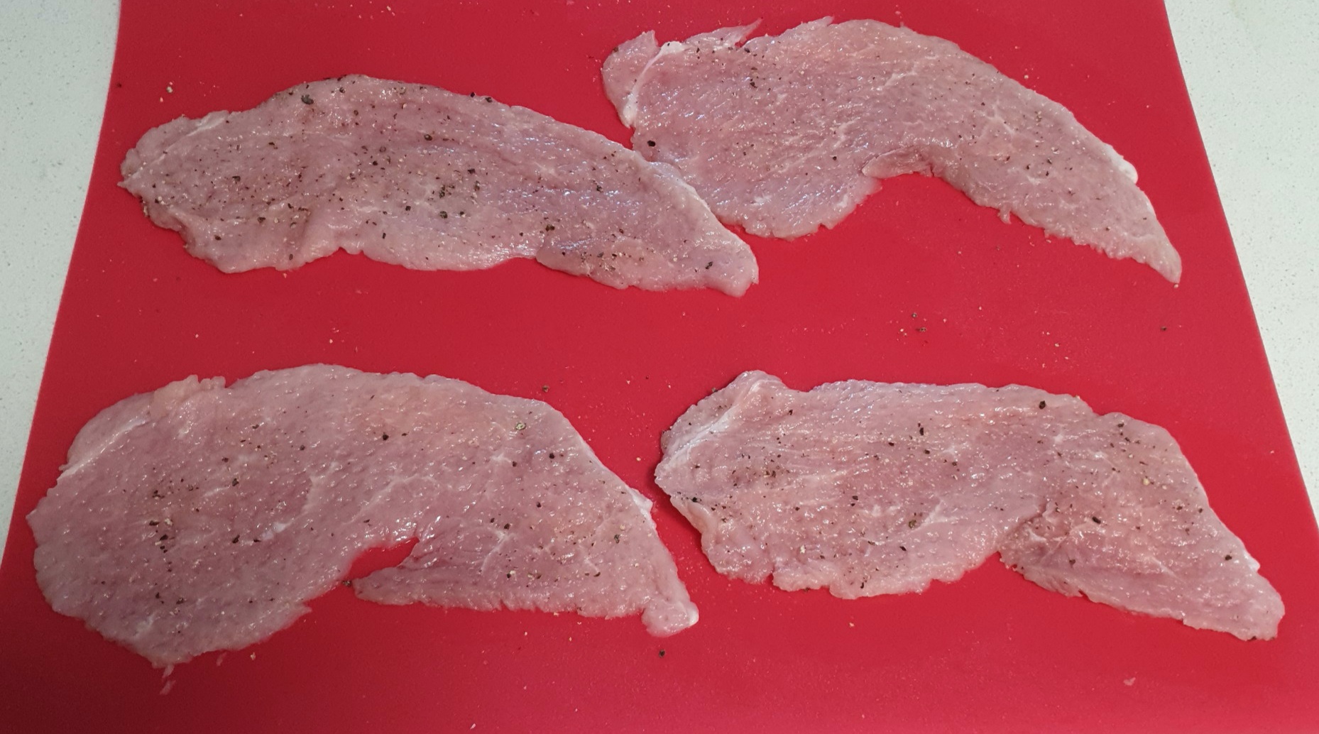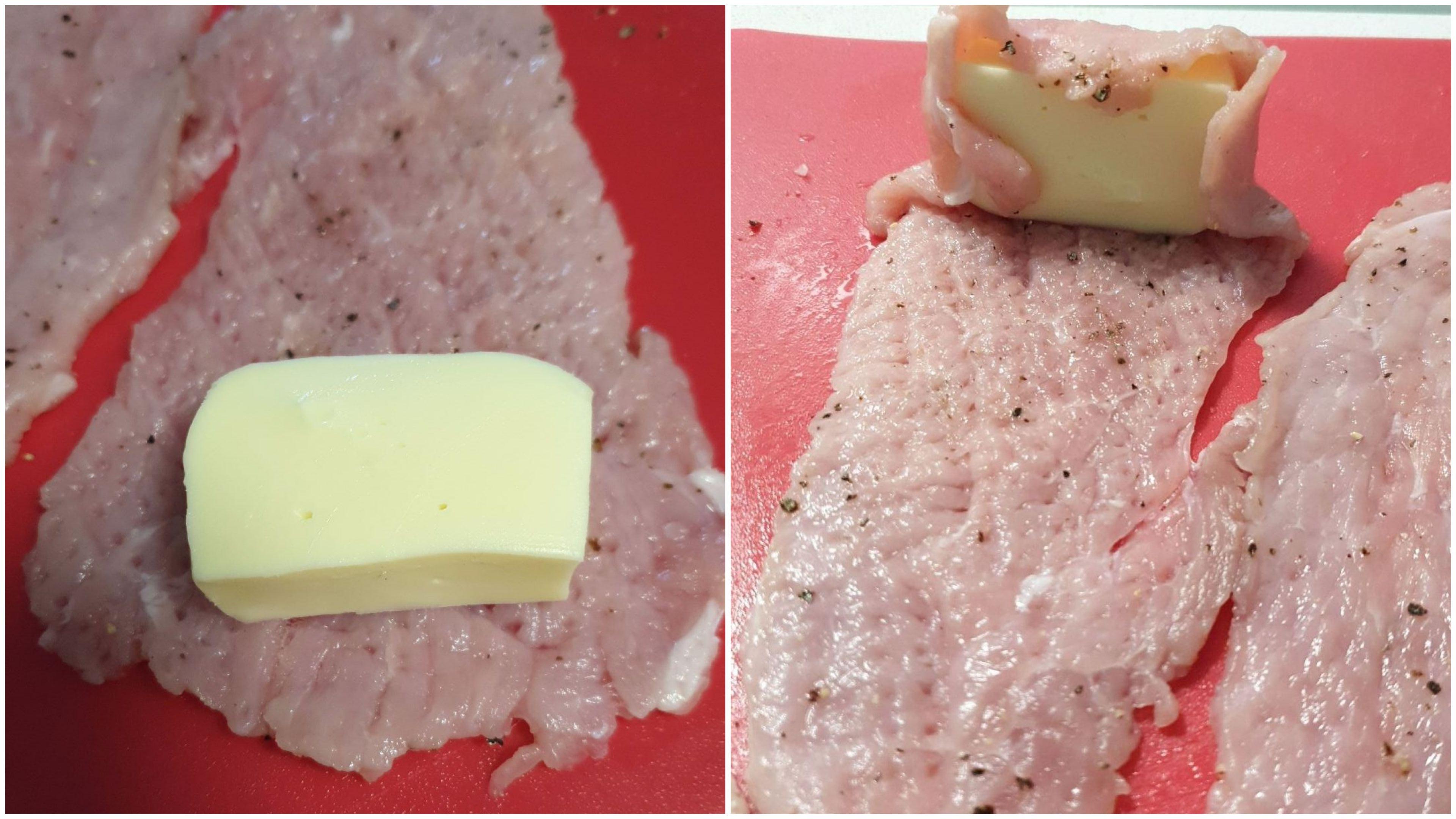 재료- 얇은 돈까스용 돼지고기, 소금, 후추, 생 모짜렐라 치즈